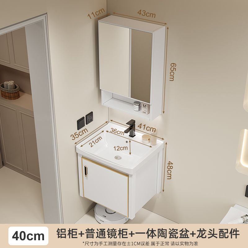 • 거울이 달린 수납장 [일반 고화질 거울] - 크림 화이트/43*35 세라믹 일체형 세면대