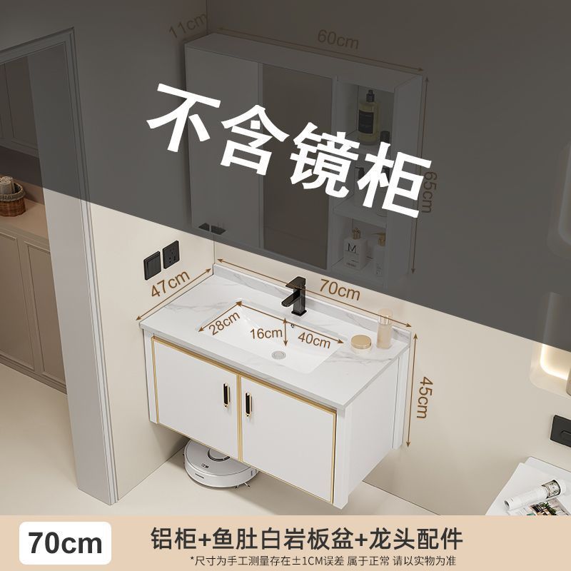 • 세면대가 있는 싱글 캐비닛 [거울 캐비닛 없음] - 크림 화이트/70*47 화이트 슬레이트 세면대