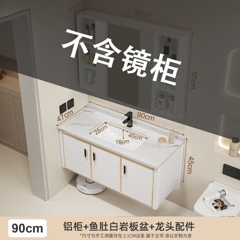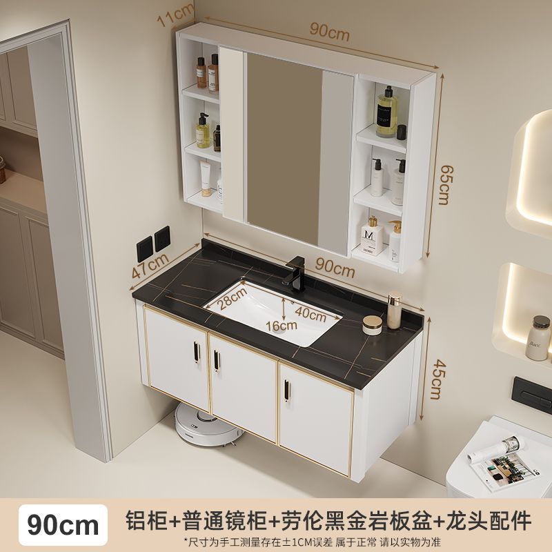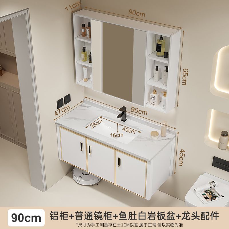 • 거울이 달린 수납장 [일반 고화질 거울] - 크림 화이트/90*47 화이트 슬레이트 세면대