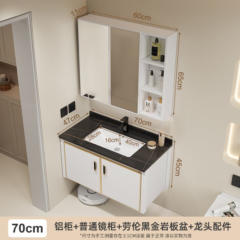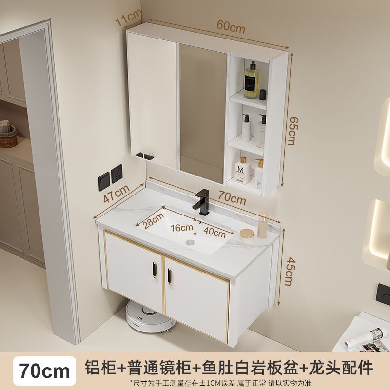 • 거울이 달린 수납장 [일반 고화질 거울] - 크림 화이트/70*47 화이트 슬레이트 세면대