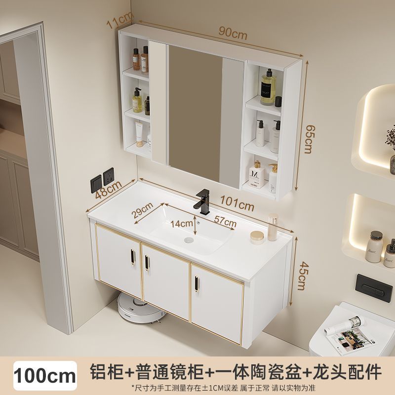 • 거울이 달린 수납장 [일반 고화질 거울]-크림 화이트/101*48 세라믹 일체형 세면대