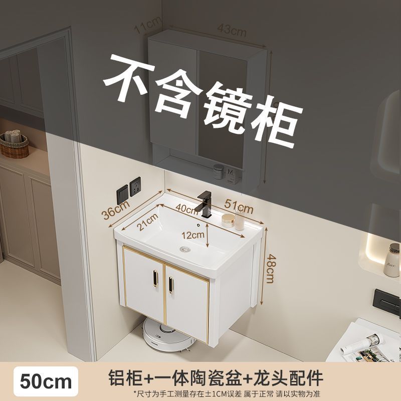 • 세면대가 있는 싱글 캐비닛 [거울 캐비닛 없음] - 크림 화이트/51*36 세라믹 일체형 세면대