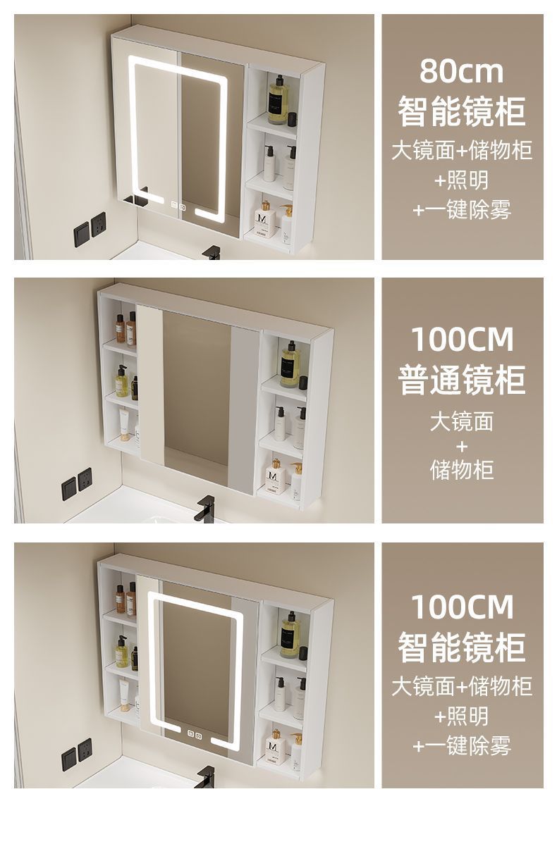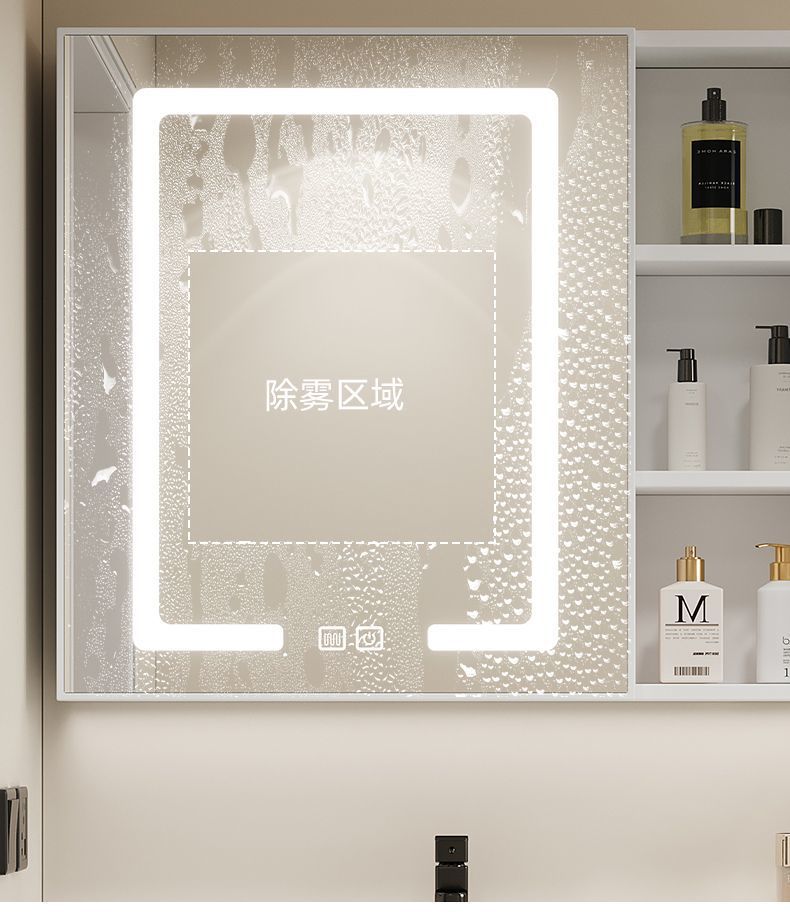 • 거울이 달린 수납장 [빛 김서림 방지 거울]-크림 화이트/80*47 화이트 슬레이트 세면대