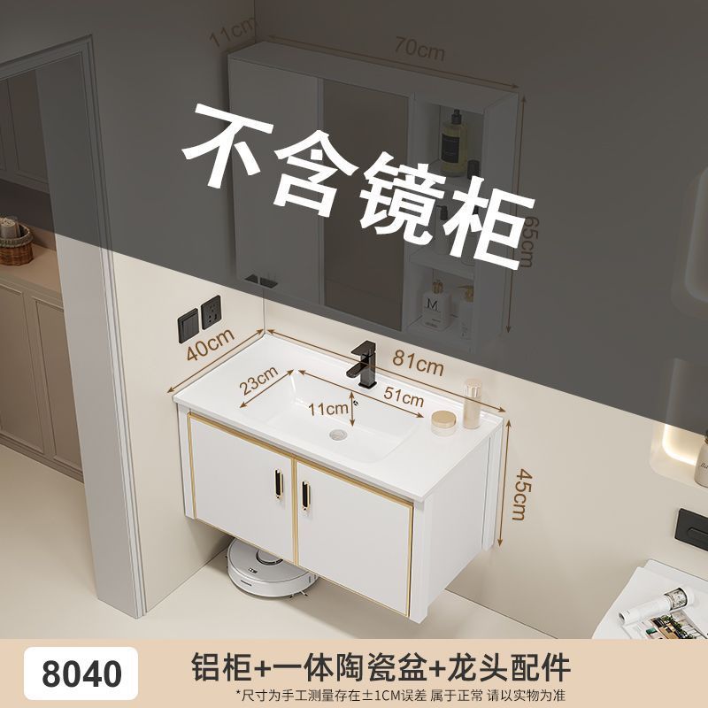 • 거울이 달린 수납장 [일반 고화질 거울] - 크림 화이트/81*40 세라믹 일체형 세면대