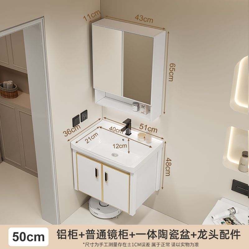 • 거울이 달린 수납장 [일반 고화질 거울]-크림 화이트/51*36 세라믹 일체형 세면대