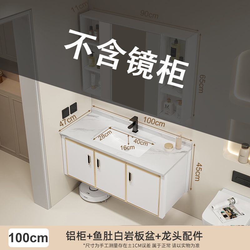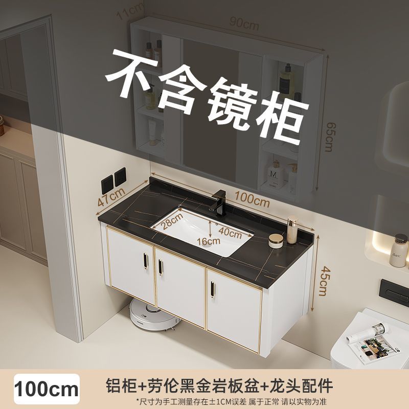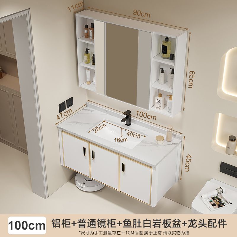 • 거울이 달린 수납장 [일반 고화질 거울]-크림 화이트/100*47 화이트 슬레이트 세면대