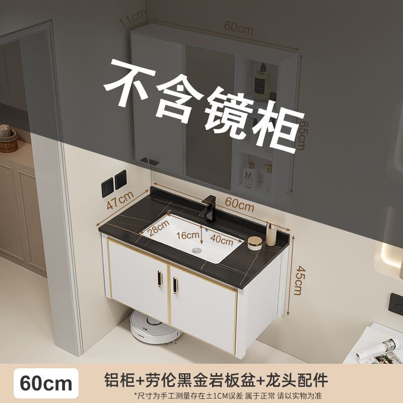 • 거울이 달린 수납장 [일반 고화질 거울] - 크림 화이트/80*47 블랙 슬레이트 세면대