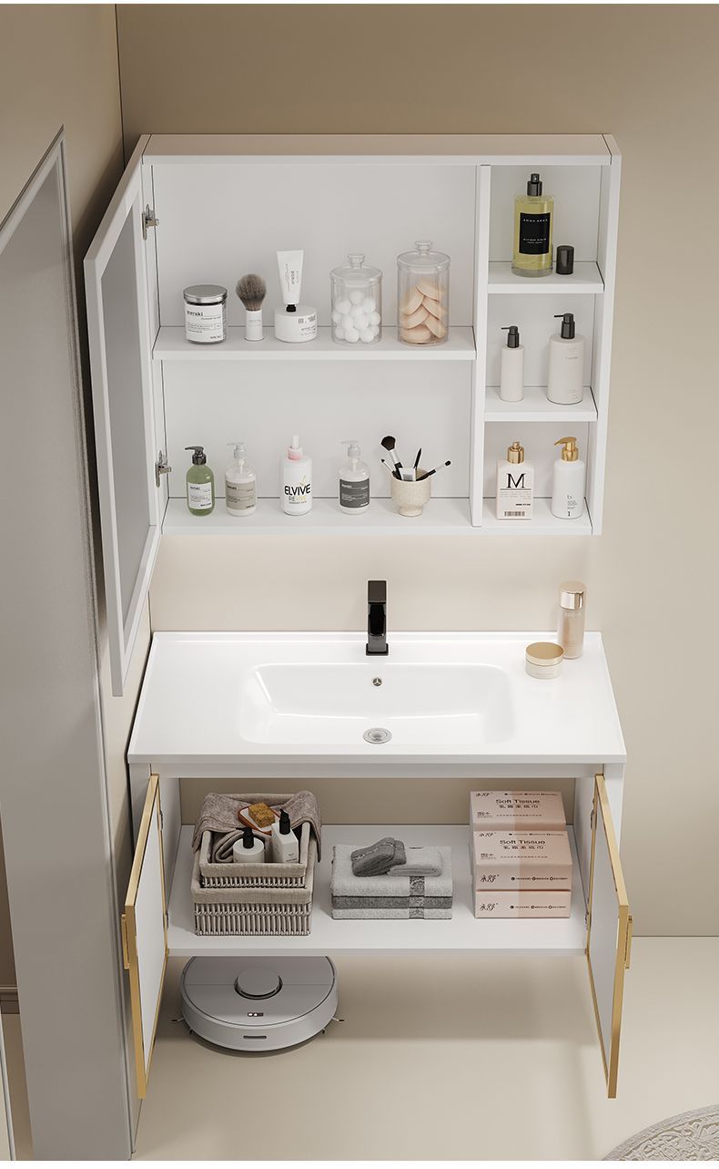 • 거울이 달린 수납장 [일반 고화질 거울] - 크림 화이트/80*47 화이트 슬레이트 세면대