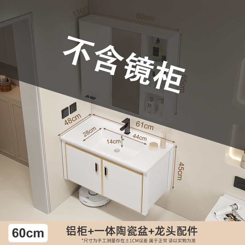• 세면대가 있는 싱글 캐비닛 [거울 캐비닛 없음] - 크림 화이트/61*48 세라믹 일체형 세면대