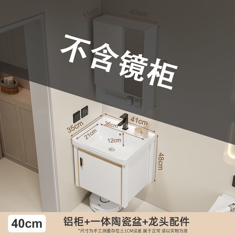 • 세면대가 있는 싱글 캐비닛 [거울 캐비닛 없음] - 크림 화이트/43*35 세라믹 일체형 세면대