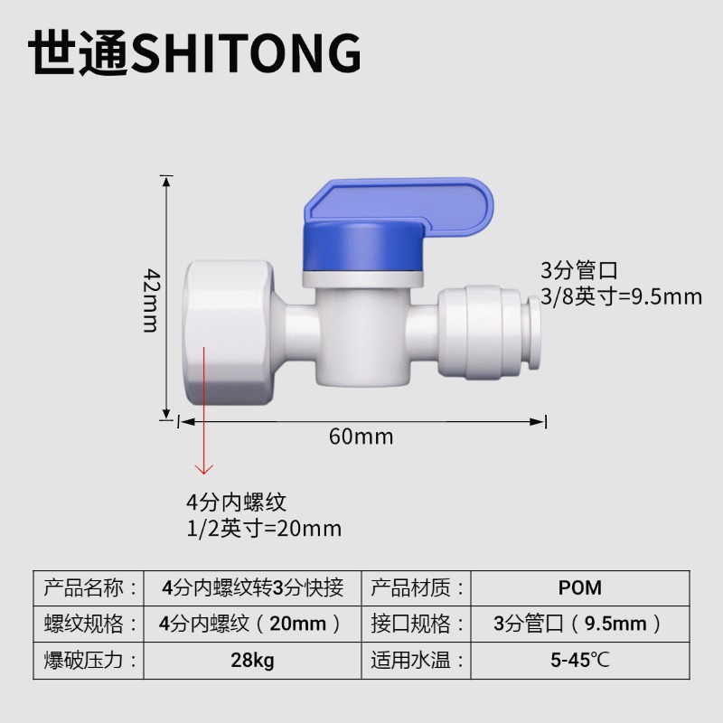 WorldCom 4 점 내부 스레드 볼 밸브 4 ~ 3 점 밸브 정수기 스위치 내부 치아 4 점 2 점 빠른 연결 볼 밸브
