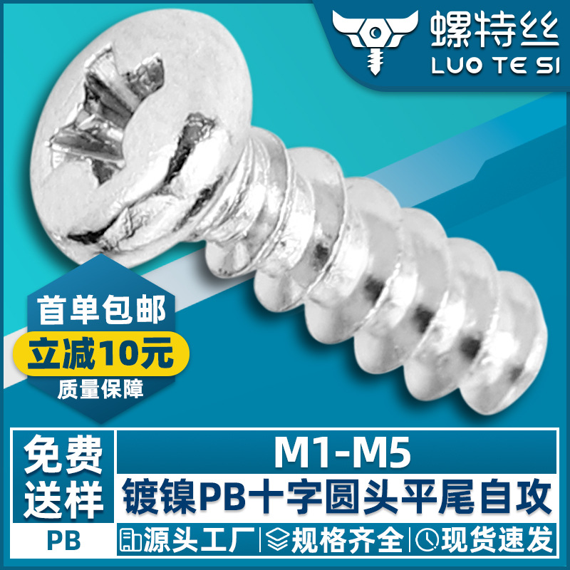 PB 니켈 도금 십자형 플랫 테일 셀프 태핑 나사 원형 헤드 소형 나사 플랫 테일 나사 M1.2/M1.4/M1.6스토어 가기