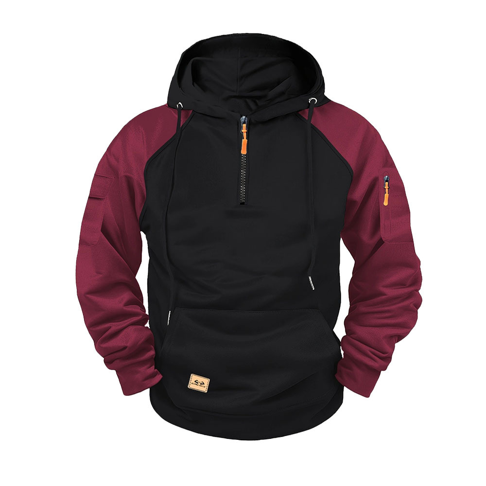2025년 크로스보더 인기 남성 컬러 블록 스웨트셔츠 후드티 하프 지퍼 멀티 포켓 풀오버 스포츠 유럽 사이즈 스웨트셔츠