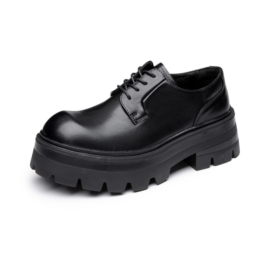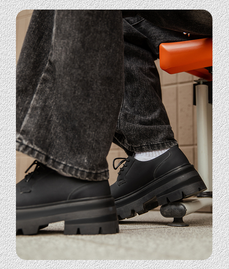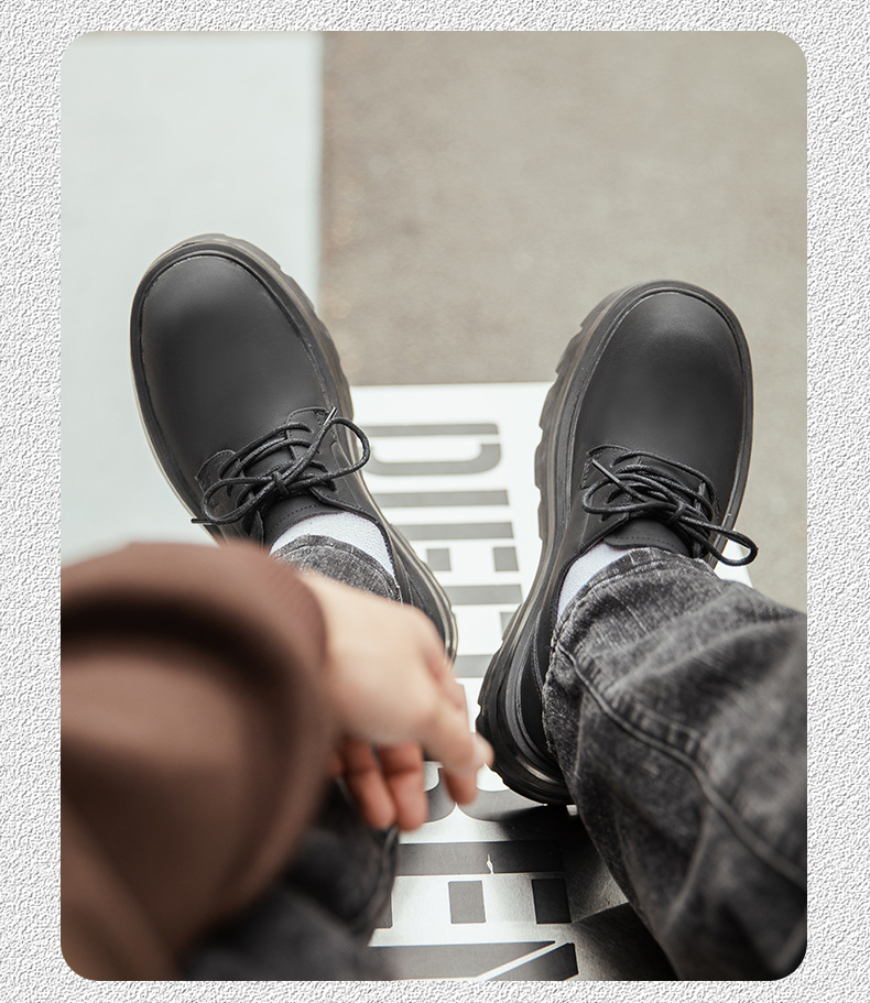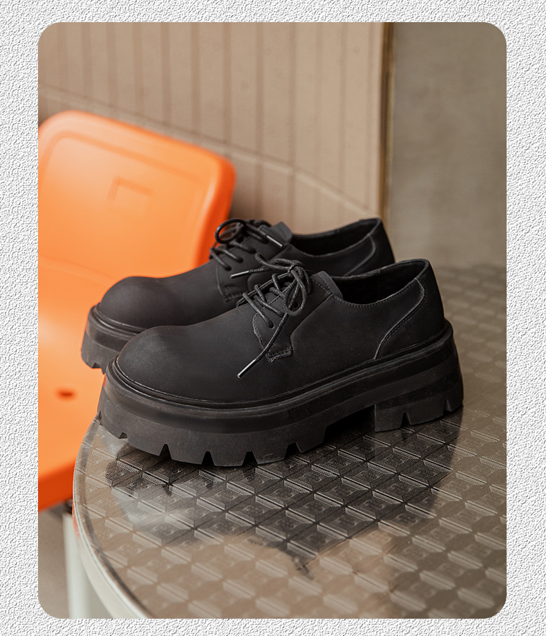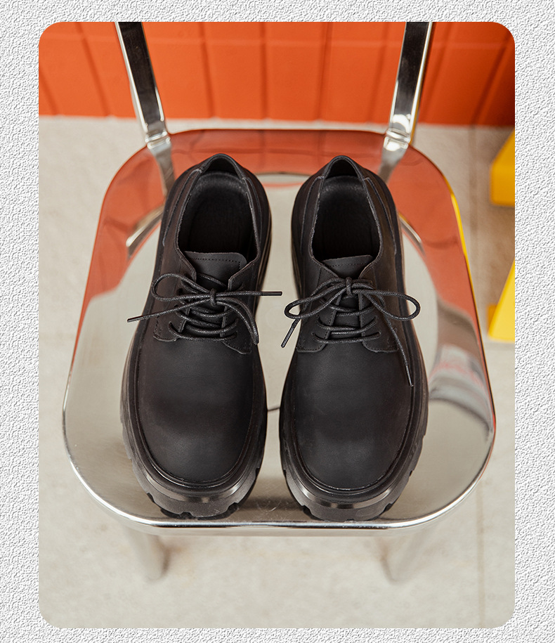 2025 새로운 통근 더비 신발 남성용 두꺼운 밑창 영국식 라운드 토 블랙 하이 엔드 빅 토 가죽 신발 9133스토어 가기