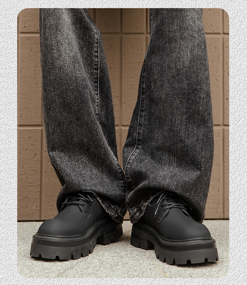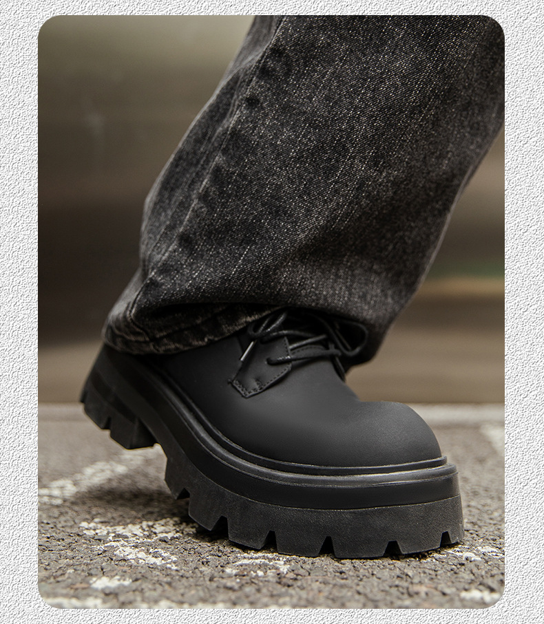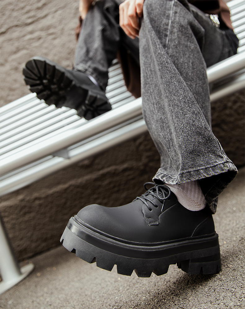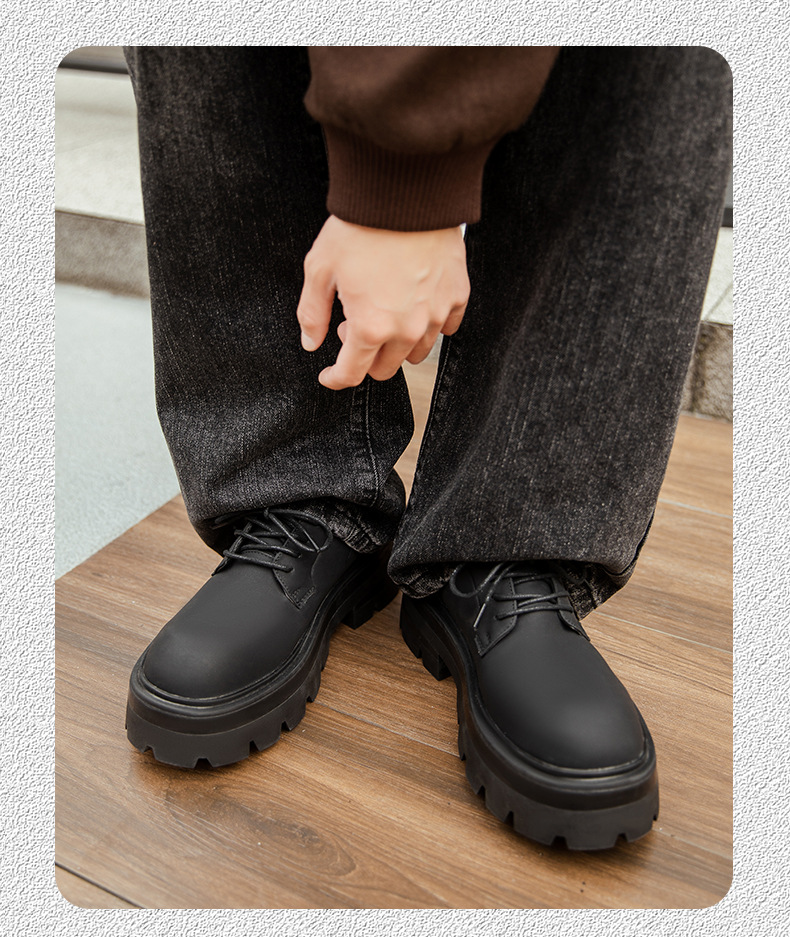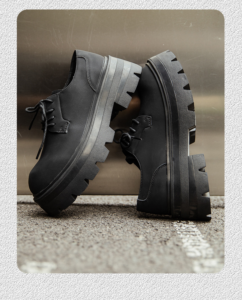 2025 새로운 통근 더비 신발 남성용 두꺼운 밑창 영국식 라운드 토 블랙 하이 엔드 빅 토 가죽 신발 9133스토어 가기
