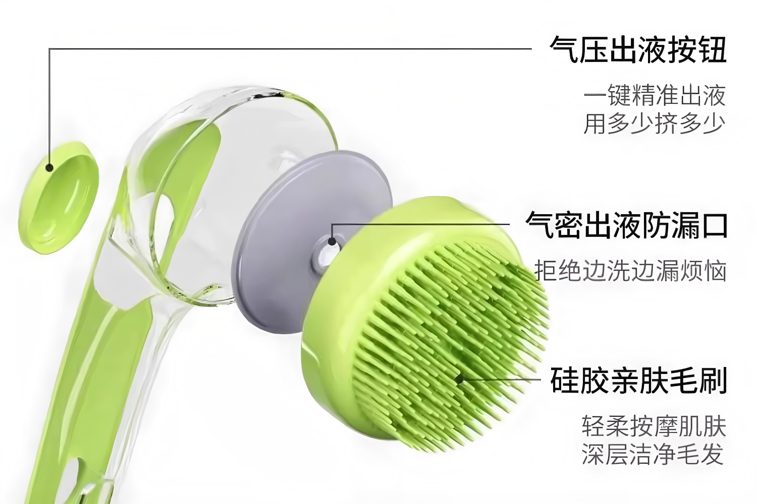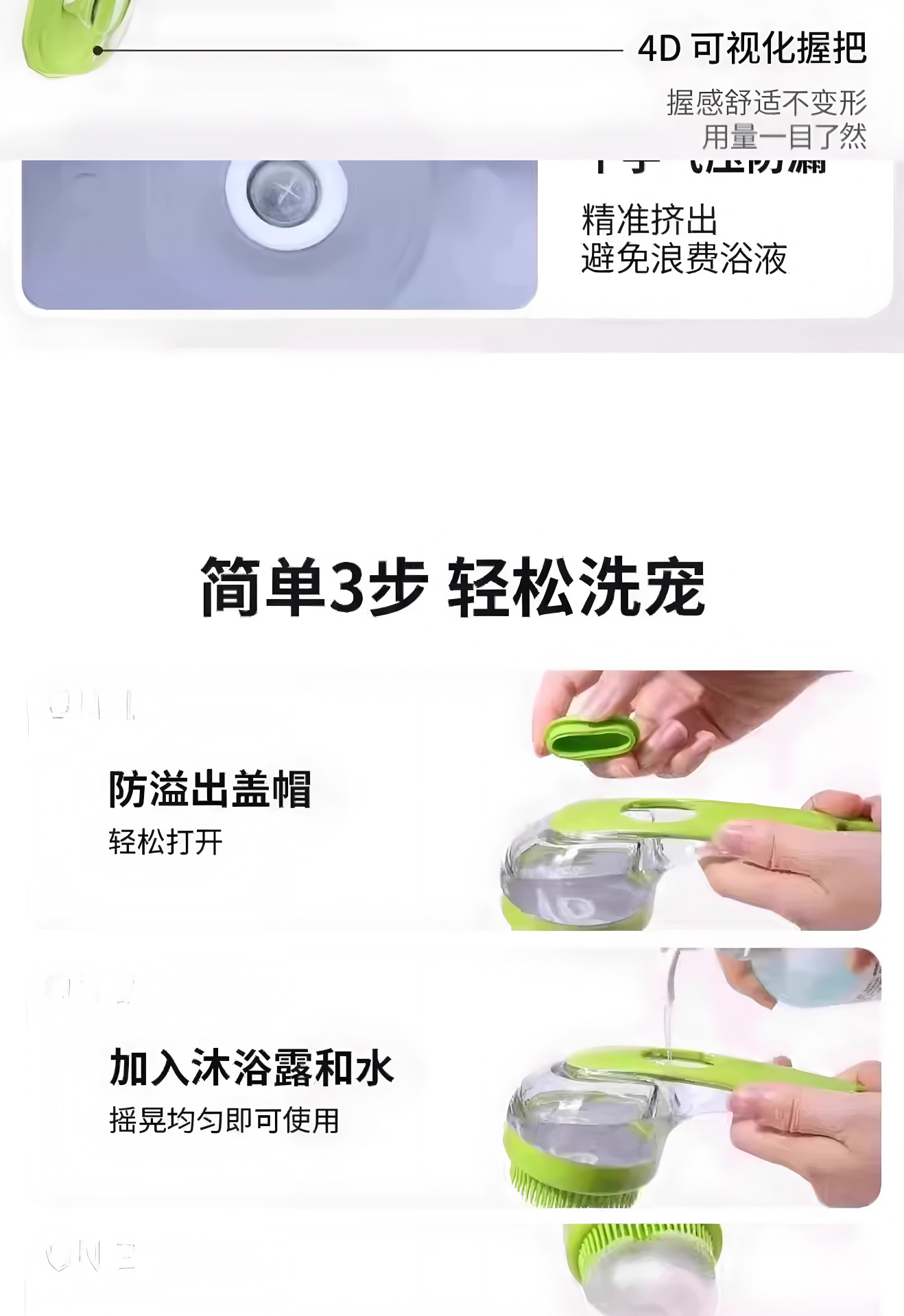 • 애완동물 목욕 브러쉬 [액체 추가 가능] - 클로버 그린