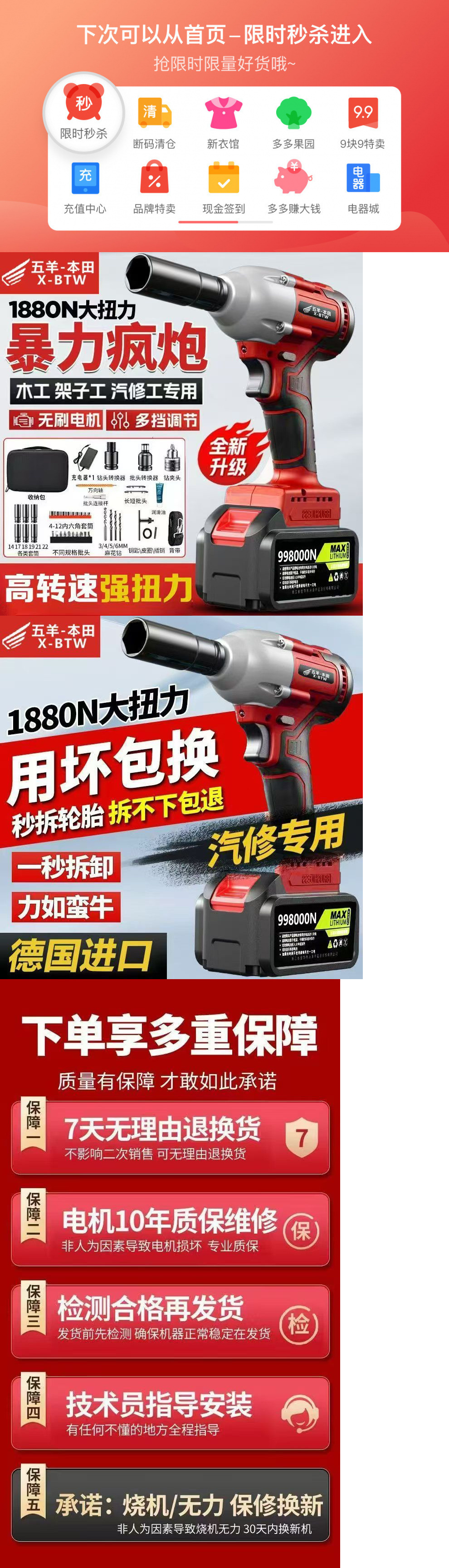 • 1998 폭력풍포 [배터리 10개] 배터리 3개 + 만능세트 - 수입 순동 브러시리스 모터 [공식 정품] 낡은 것을 새것으로 교체하세요
