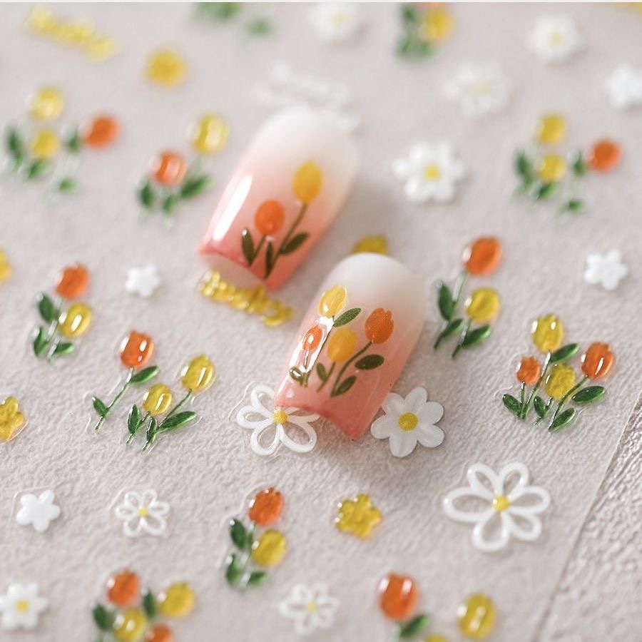 새로운 봄 튤립 젤리 네일 아트 스티커 스테레오 플라워 인 귀여운 높은 색상 가치 신선한 네일 스티커