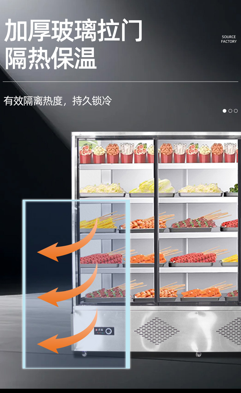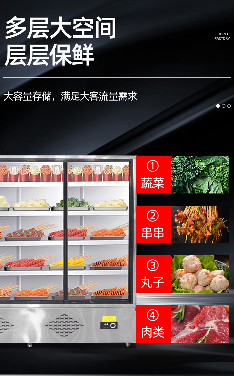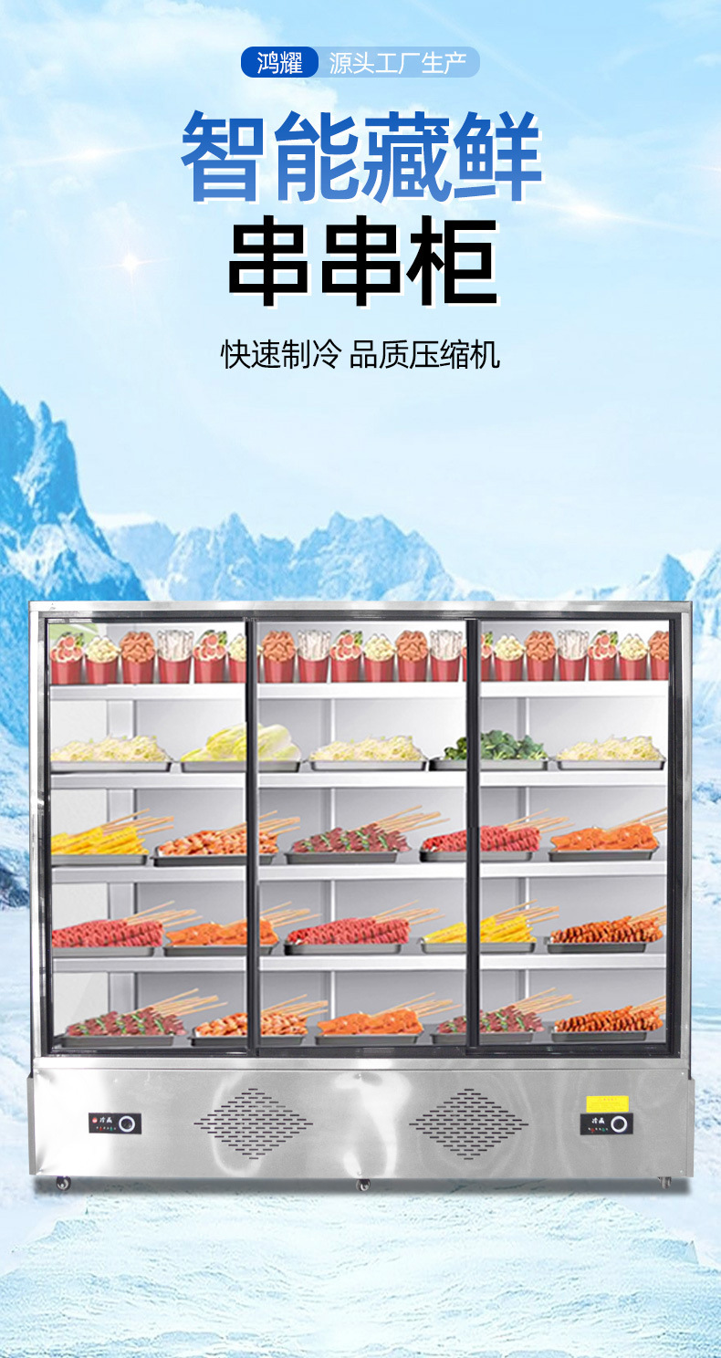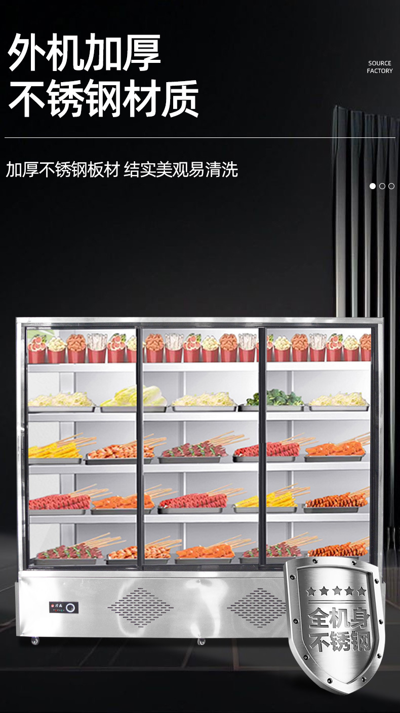 꼬치고기 상업용 꼬치튀김점 식당 야채 진열장 과일 보존 도어가 있는 에어커튼 캐비닛 매운탕 주문 캐비닛스토어 가기