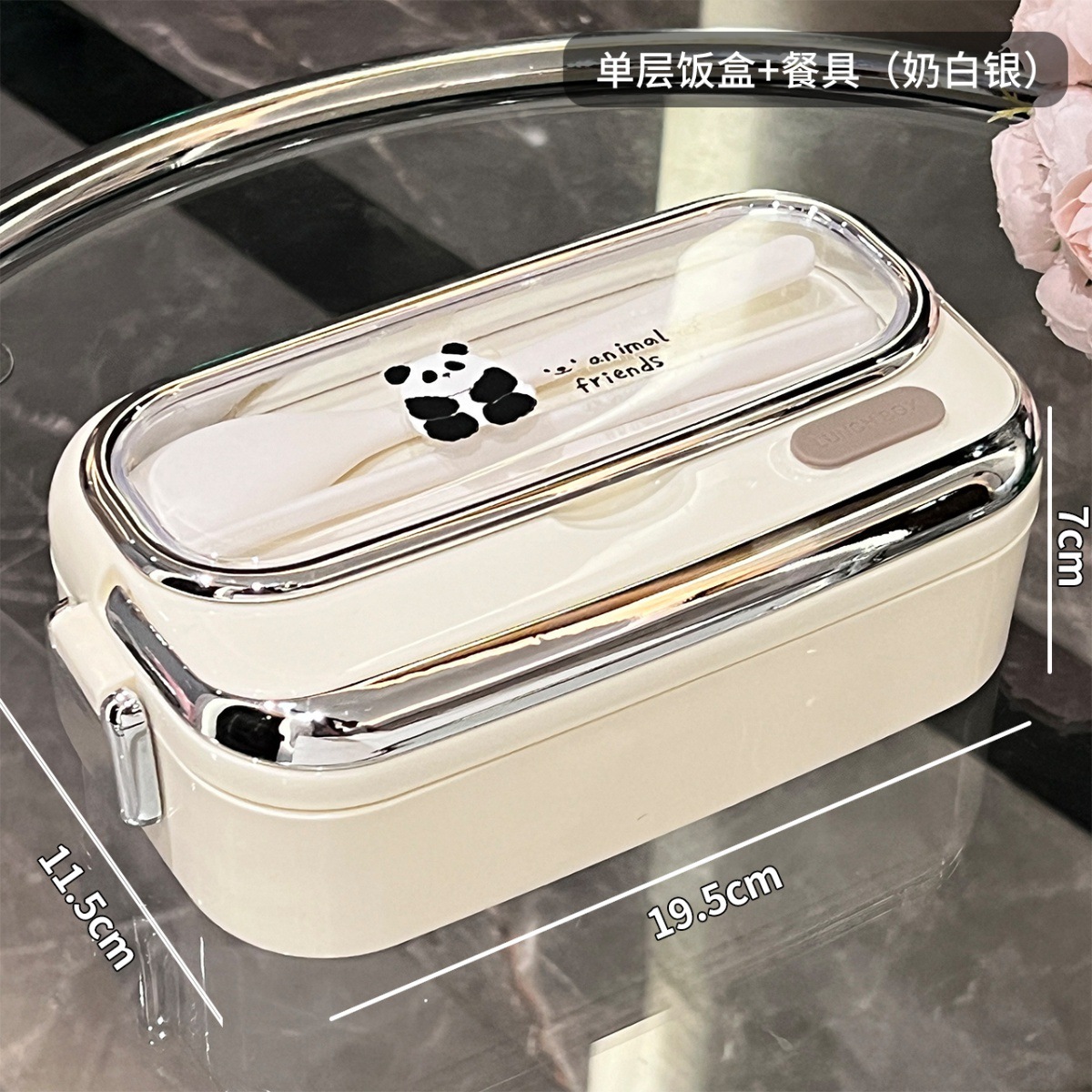 • 단층 도시락 + 식기 (밀크 실버) ✓ ☆