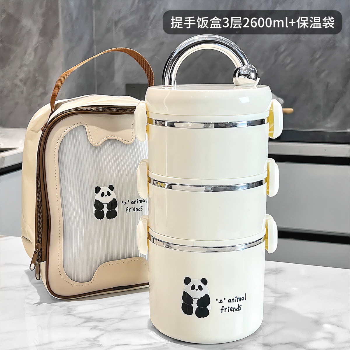 • 손잡이 도시락통 3겹 2600ml + 보온봉지✓☆
