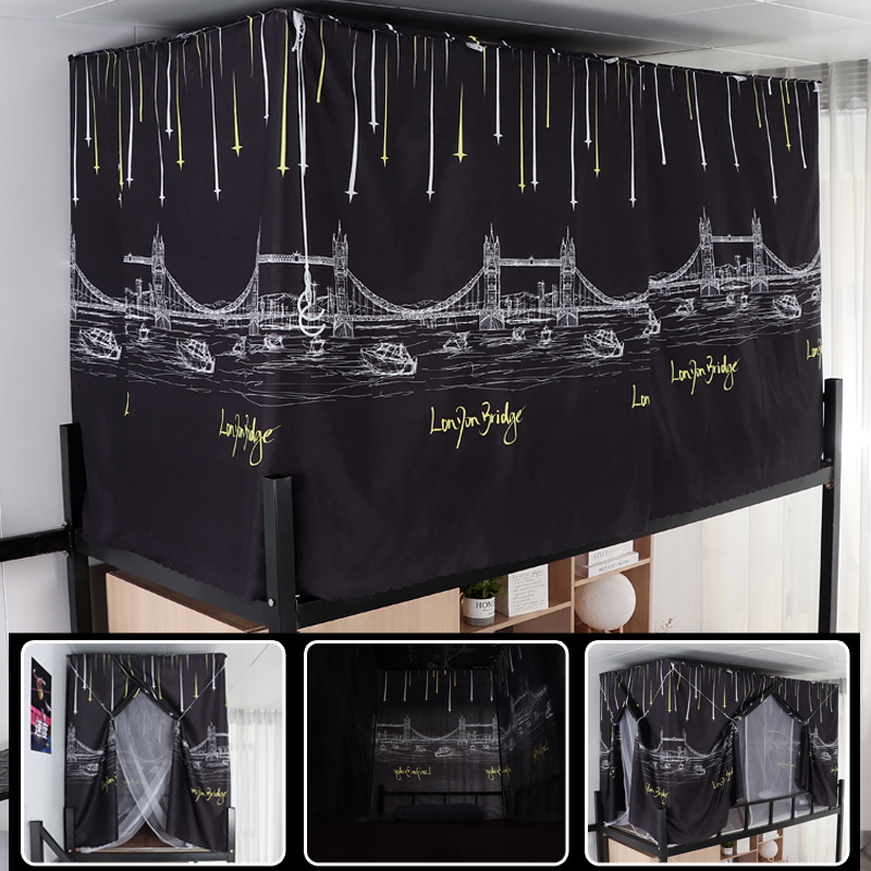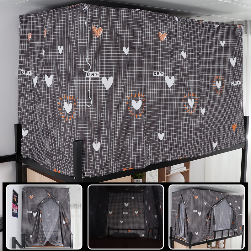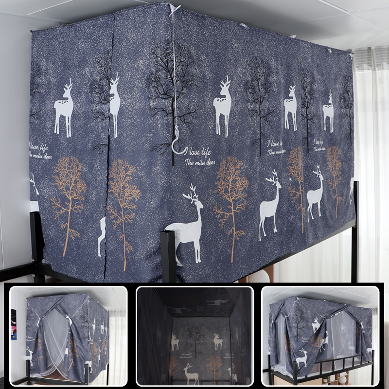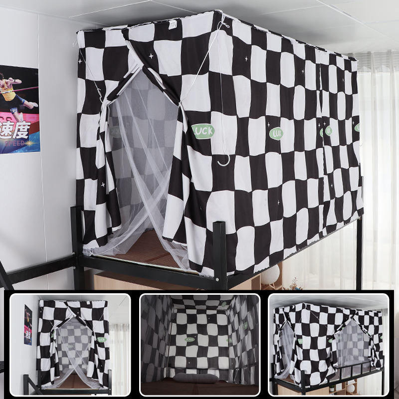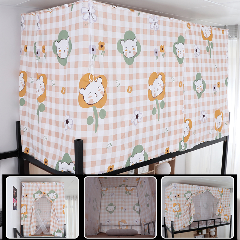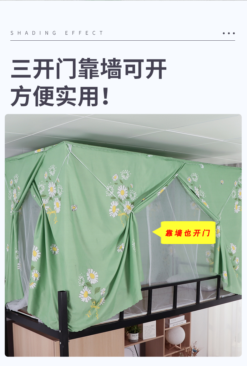 학생 기숙사 옆문 일체형 침대 커튼 모기장(스탠드 포함) 이층 침대 범용 3도어 모기 방지 및 차광