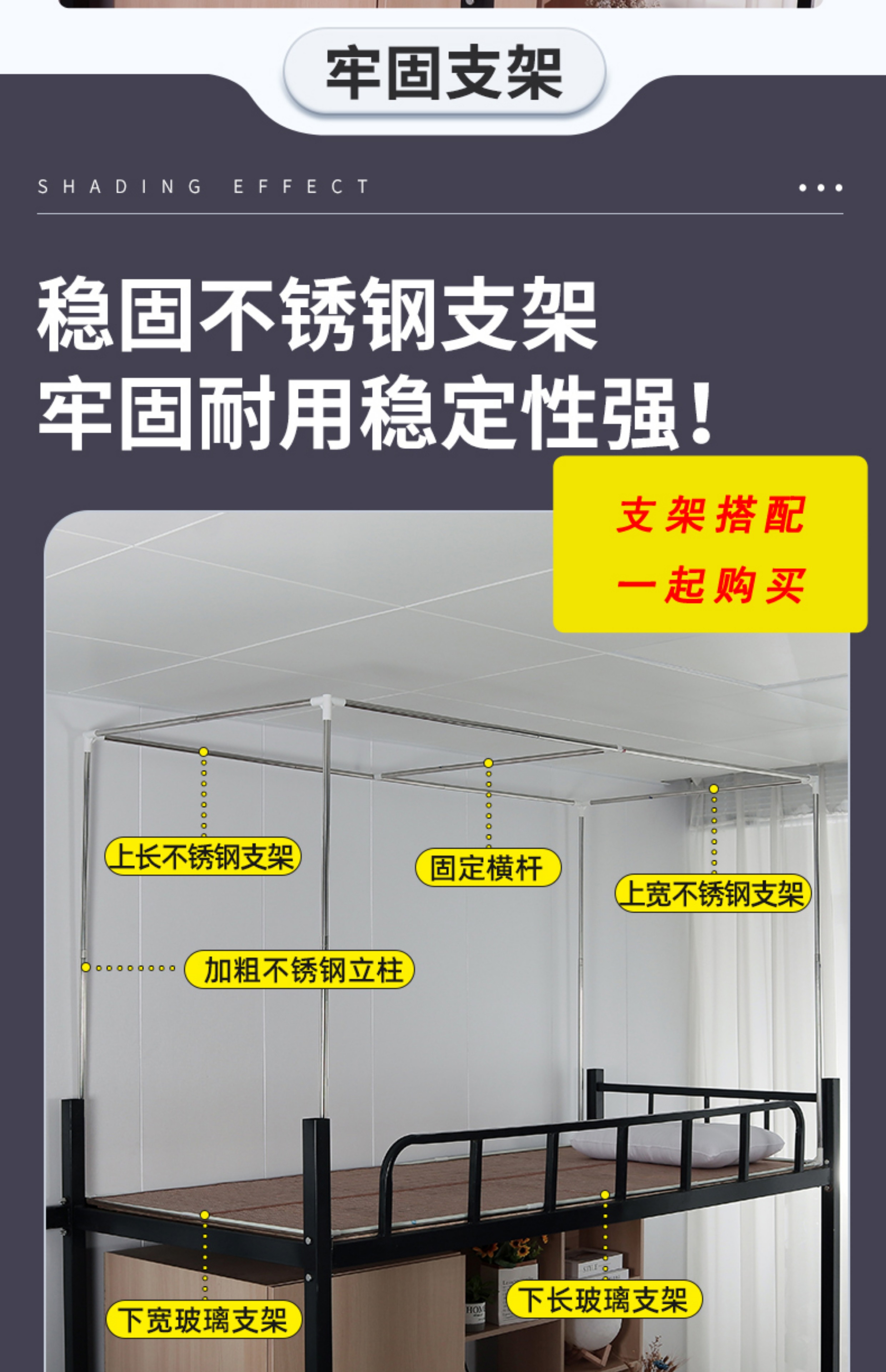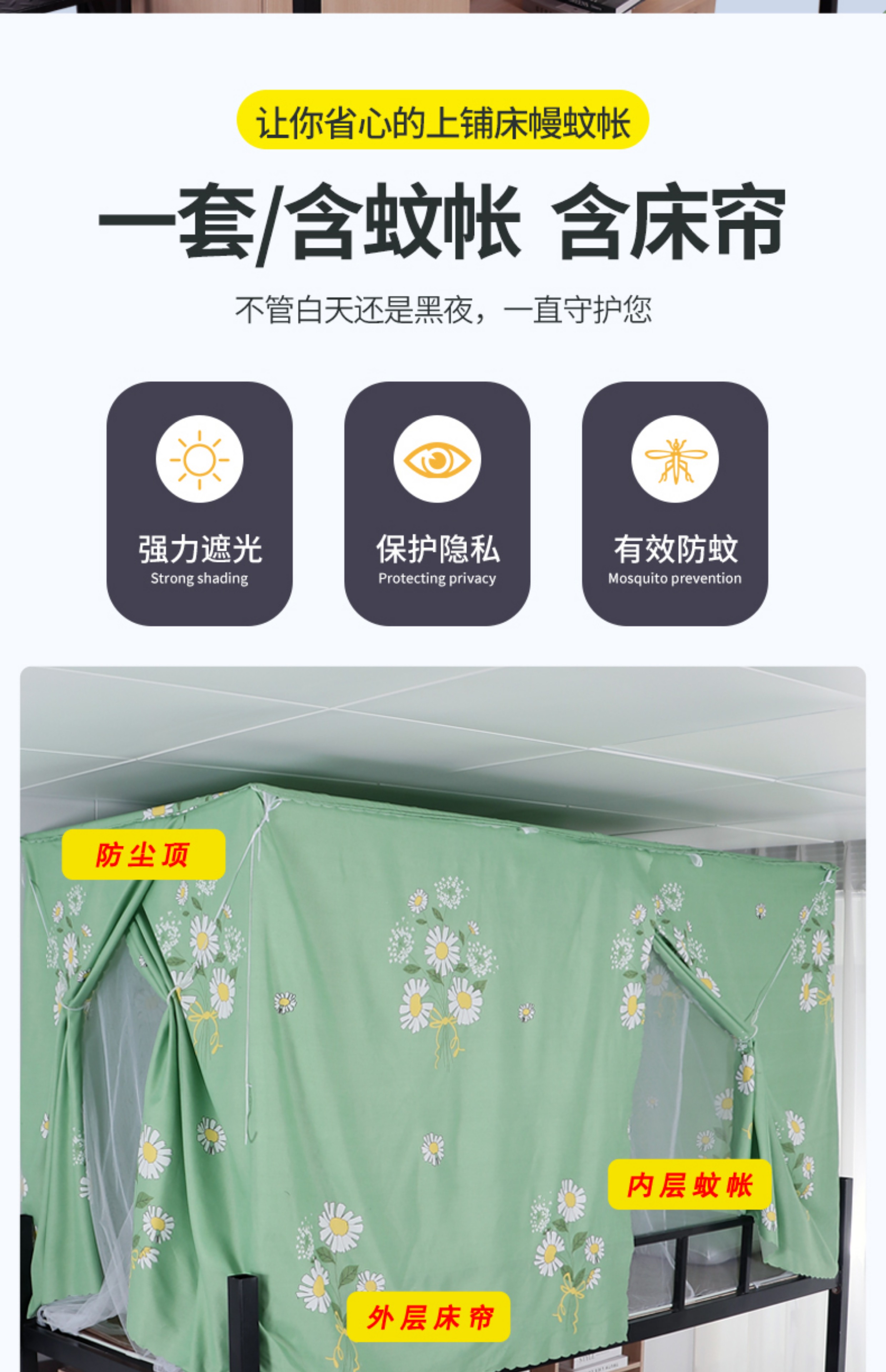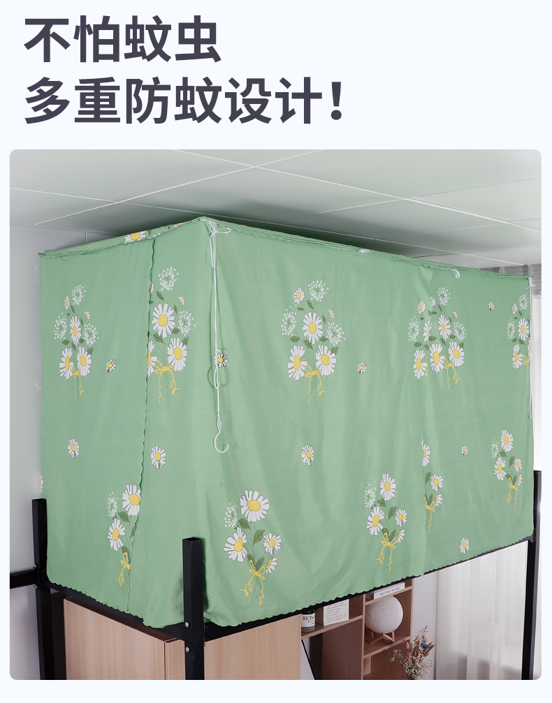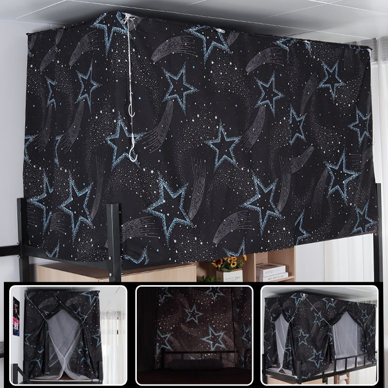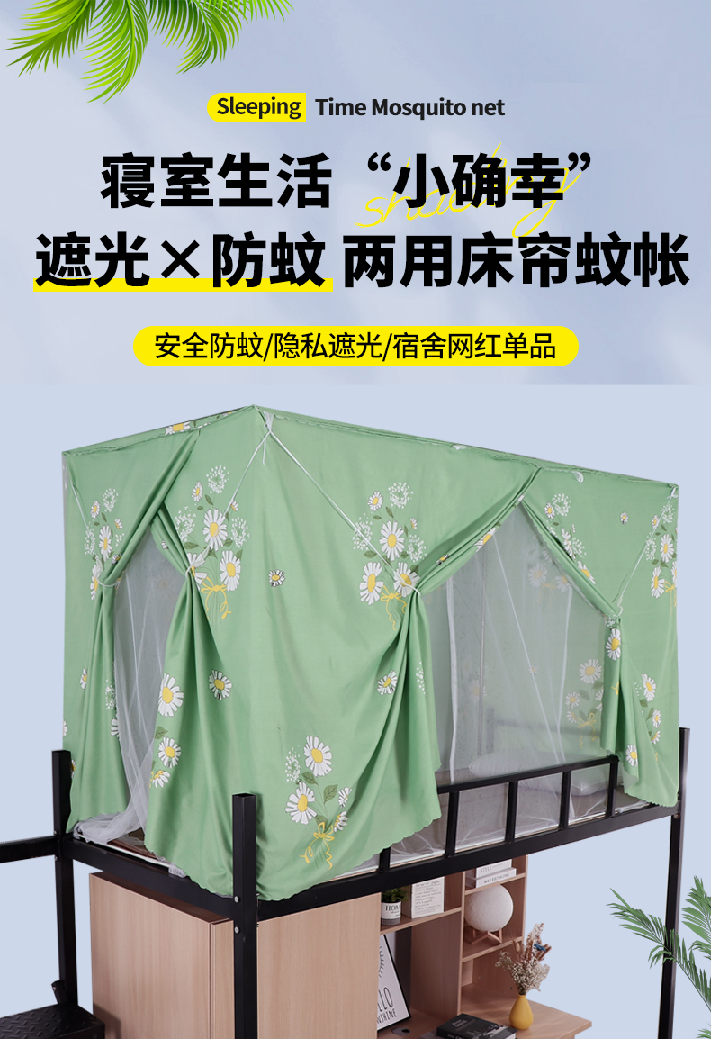학생 기숙사 옆문 일체형 침대 커튼 모기장(스탠드 포함) 이층 침대 범용 3도어 모기 방지 및 차광
