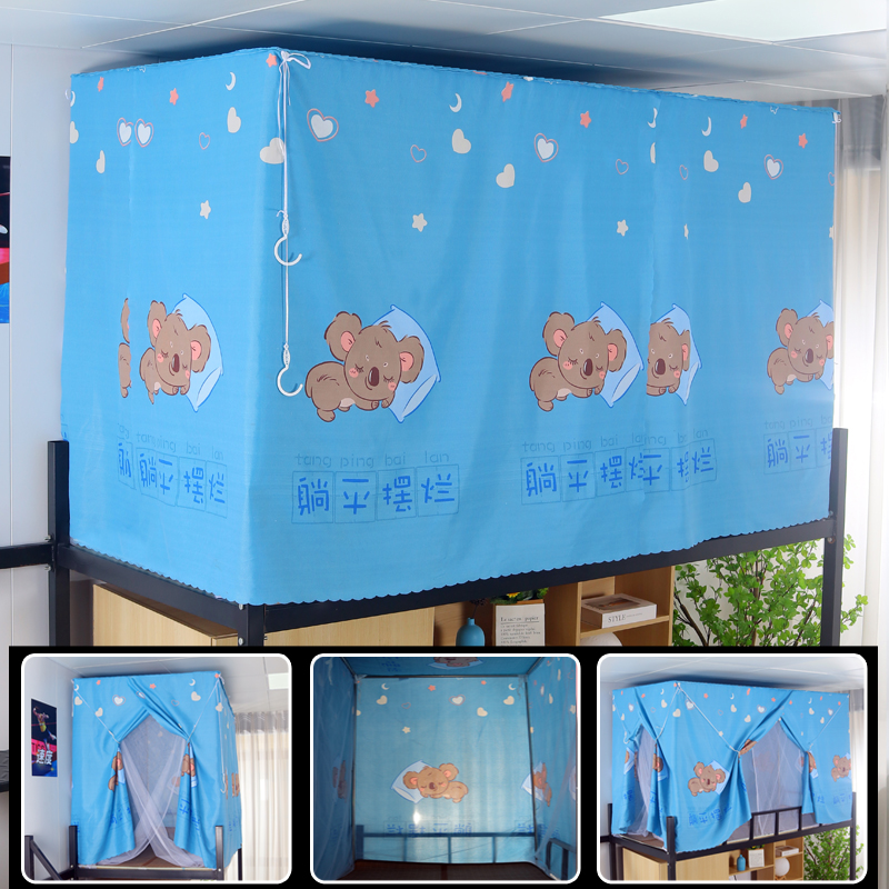 학생 기숙사 옆문 일체형 침대 커튼 모기장(스탠드 포함) 이층 침대 범용 3도어 모기 방지 및 차광스토어 가기