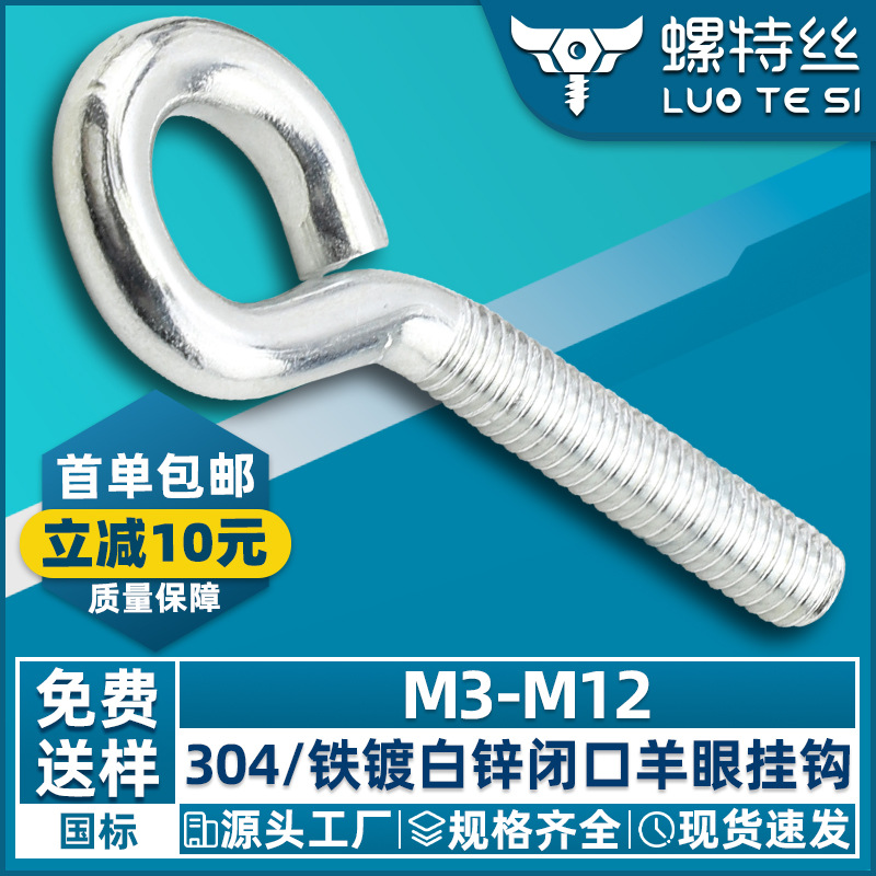 304 스테인레스 스틸 물음표 후크 폐쇄형 양 눈 나사 아연 도금 개방형 양 눈 컵 후크 볼트 M3M4M5M6M8
