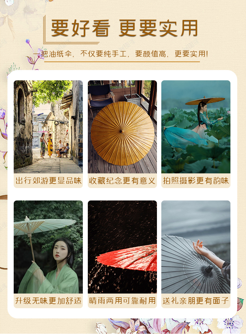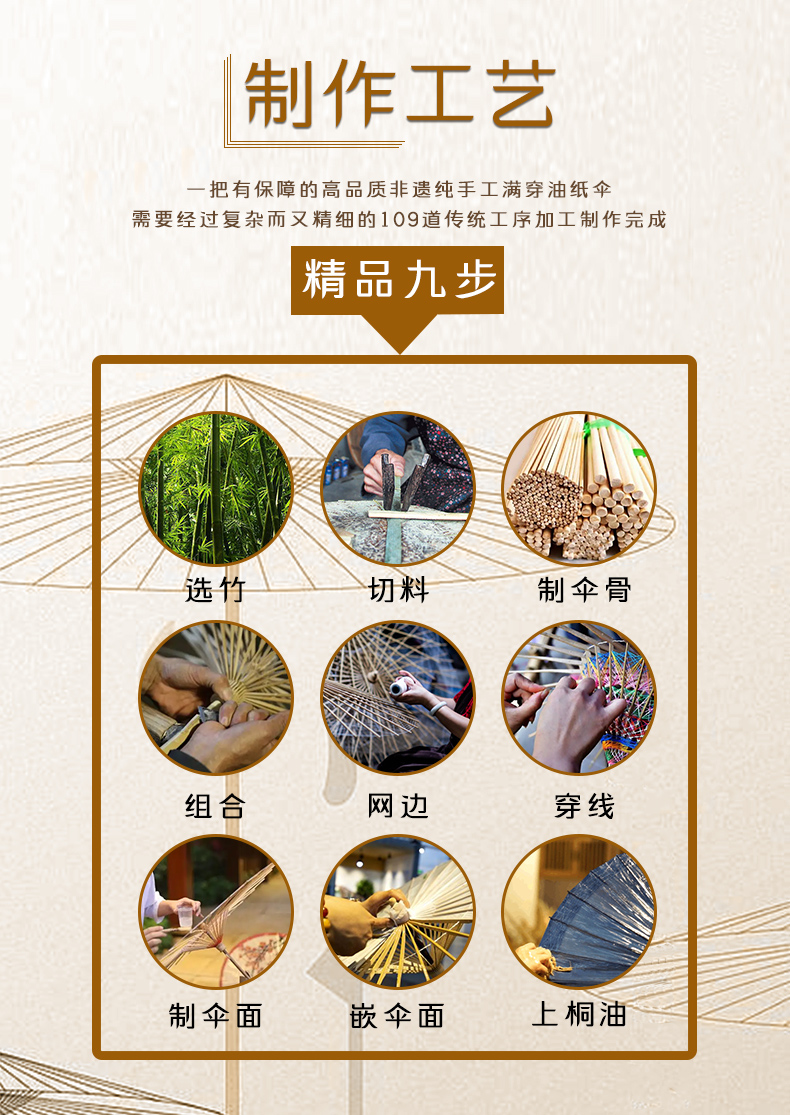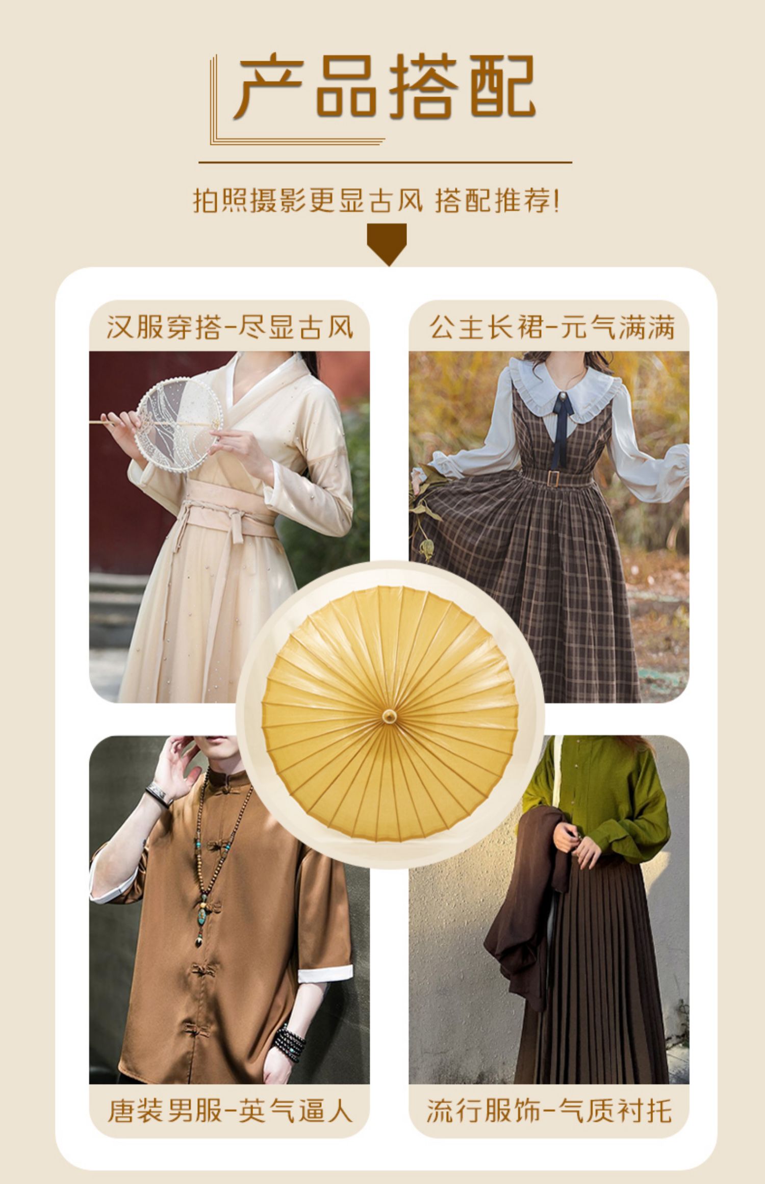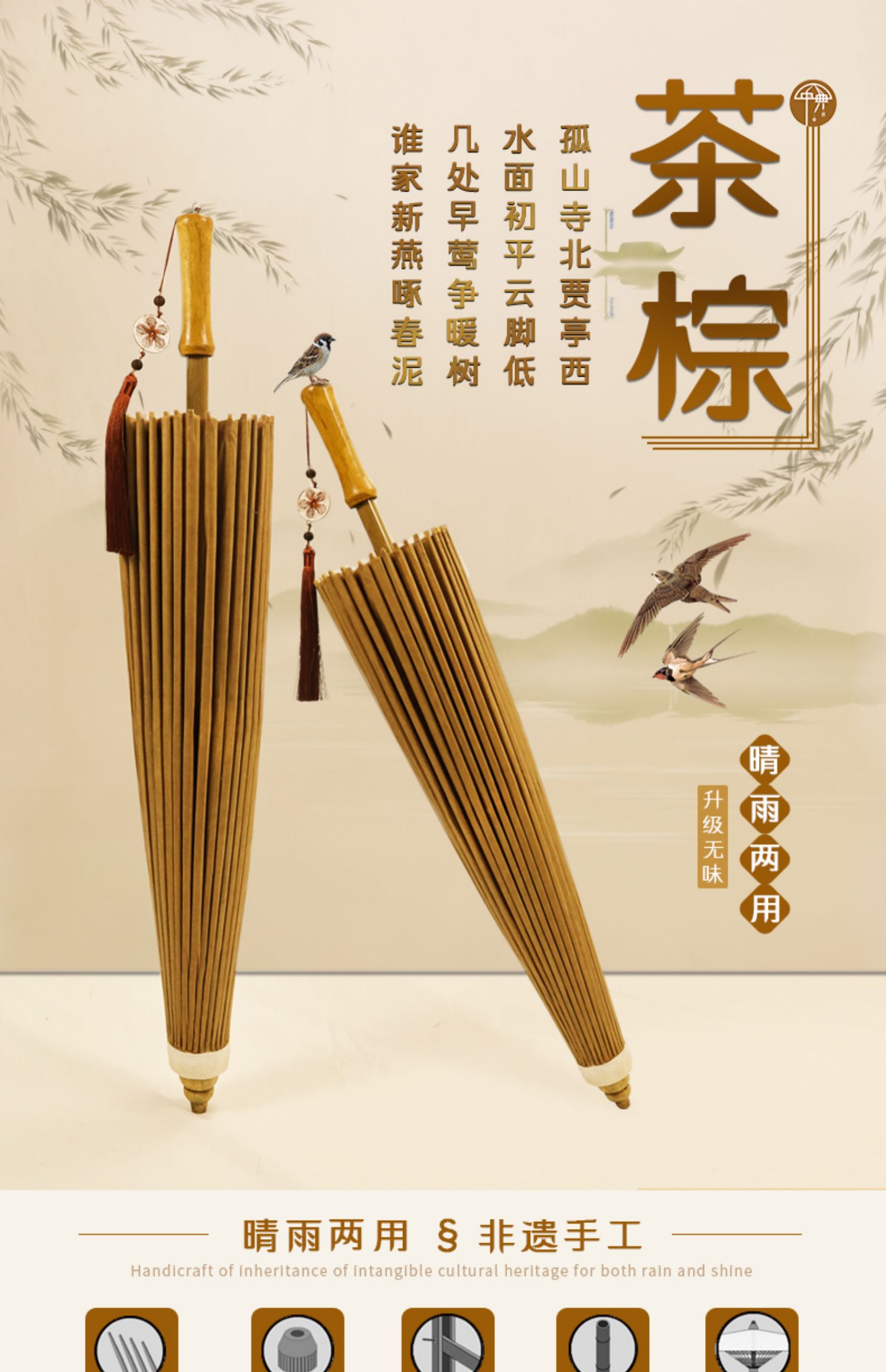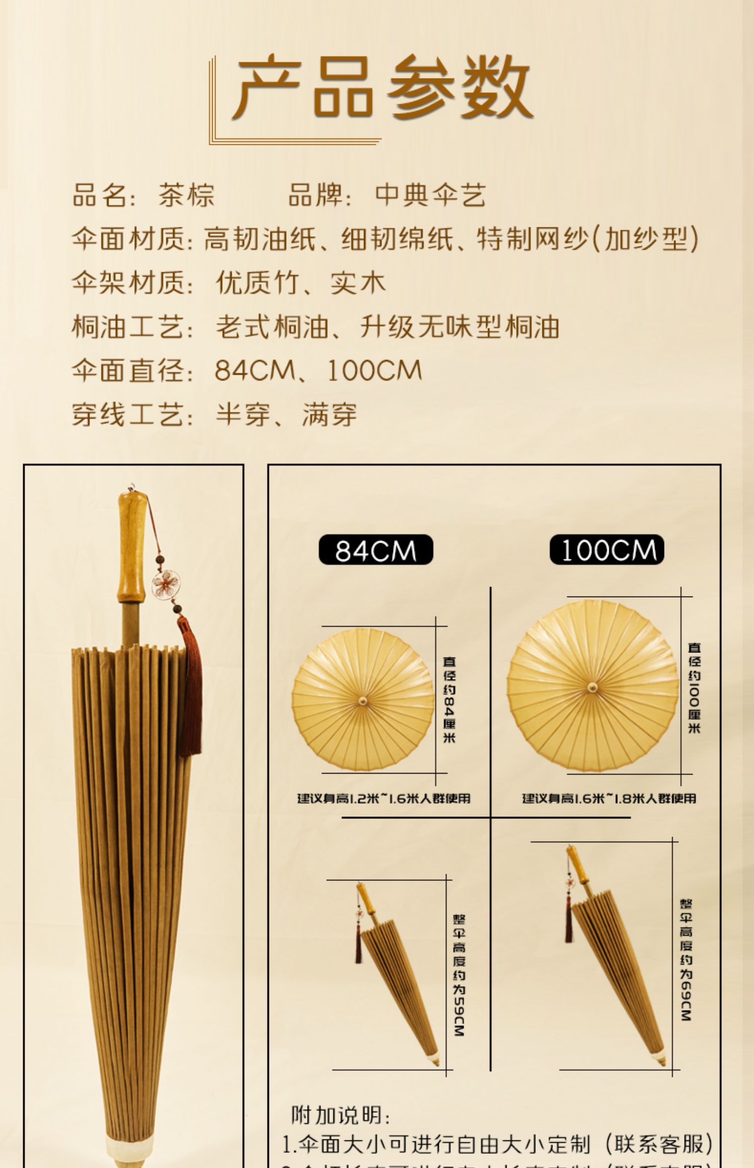 ♡Zhongdian 맛없는 기름 종이 우산 복고풍 다크 브라운 골동품 남성과 여성의 실용적인 방수 자외선 차단제 전통 수제스토어 가기
