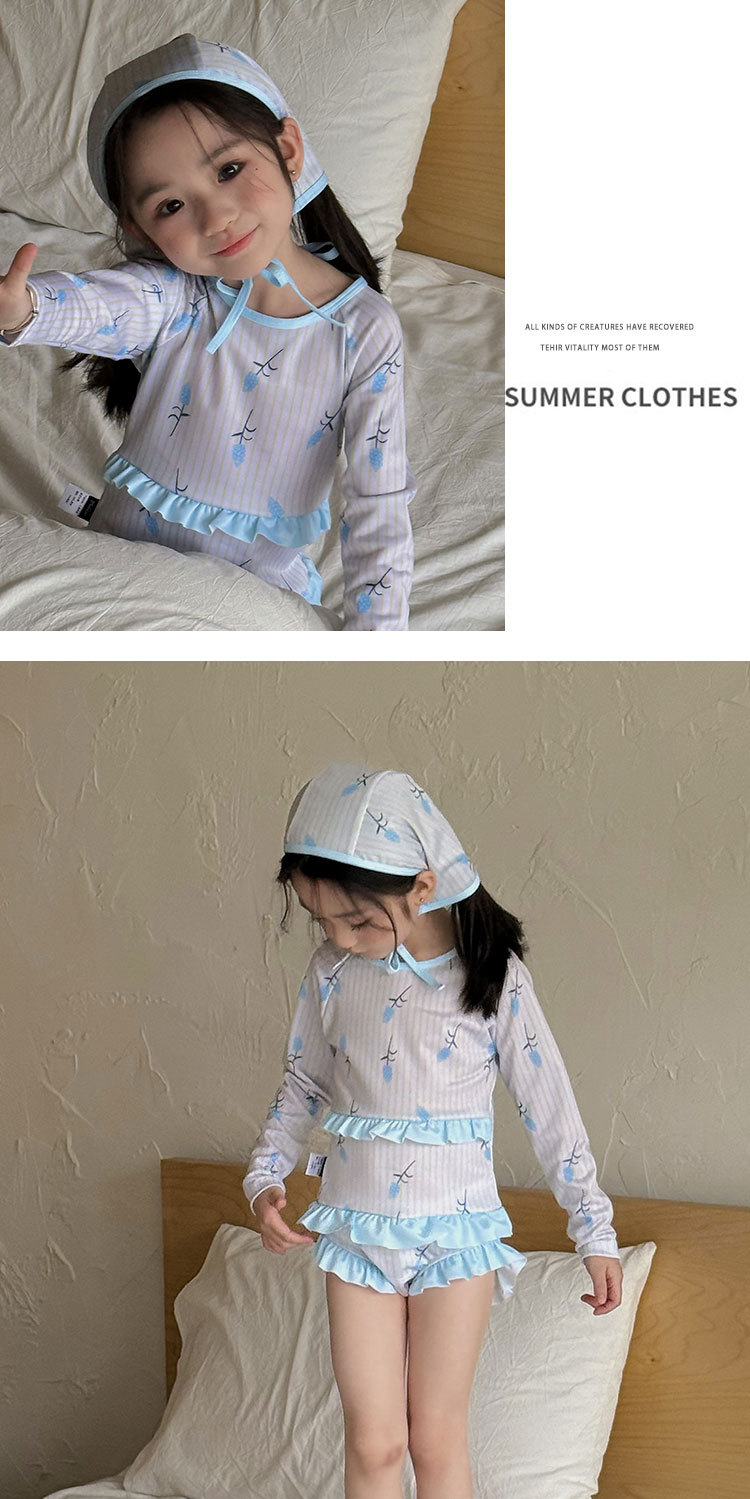 2025 여름 새 여자 수영복 원피스 긴 소매 선 스크린 수영복 귀여운 꽃 온천 휴가 빠른 건조 수영복