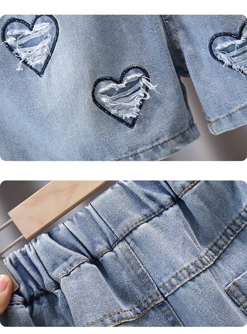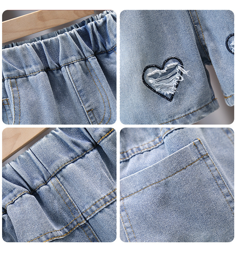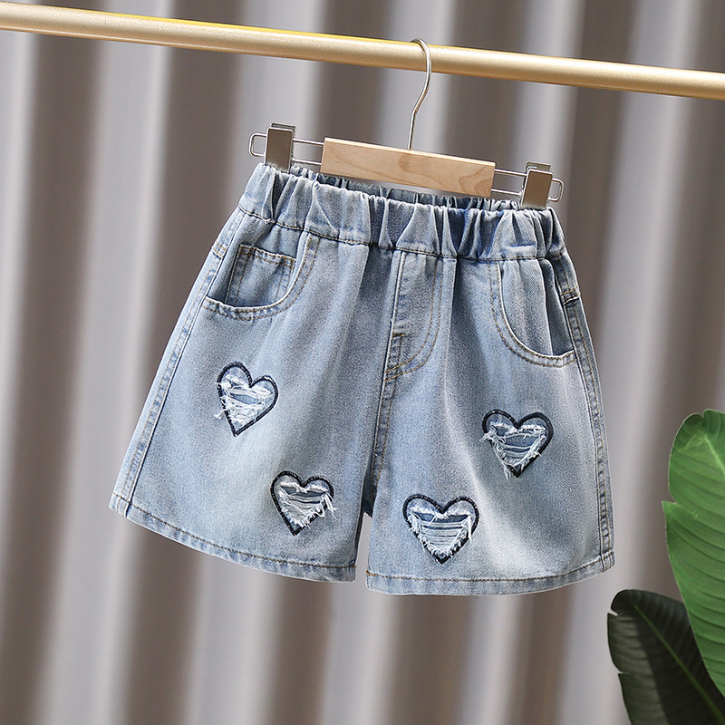 소녀 데님 반바지 2025 새로운 스타일 어린이 큰 어린이 외부 착용 큰 어린이 여름 얇은 뜨거운 바지 소녀 바지스토어 가기