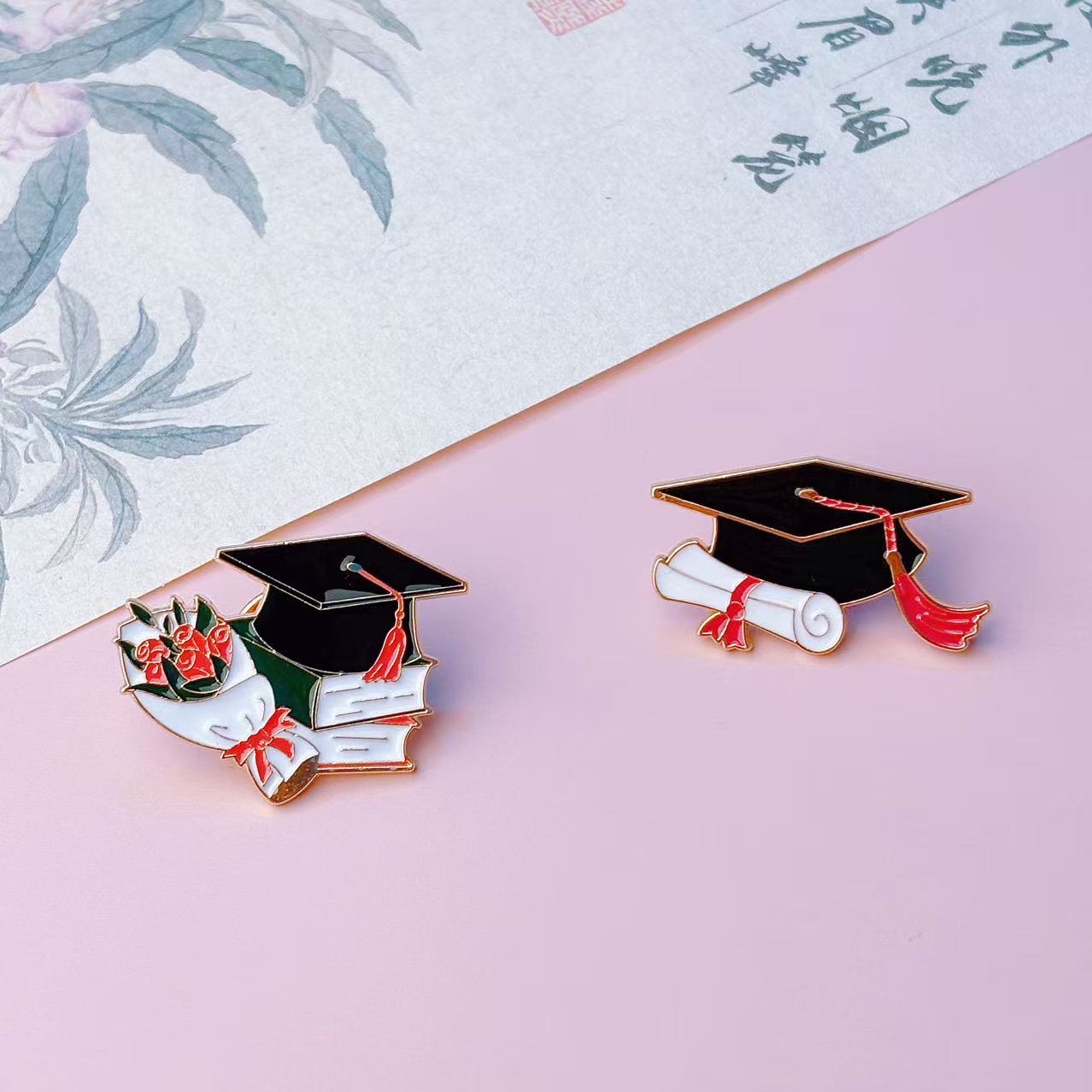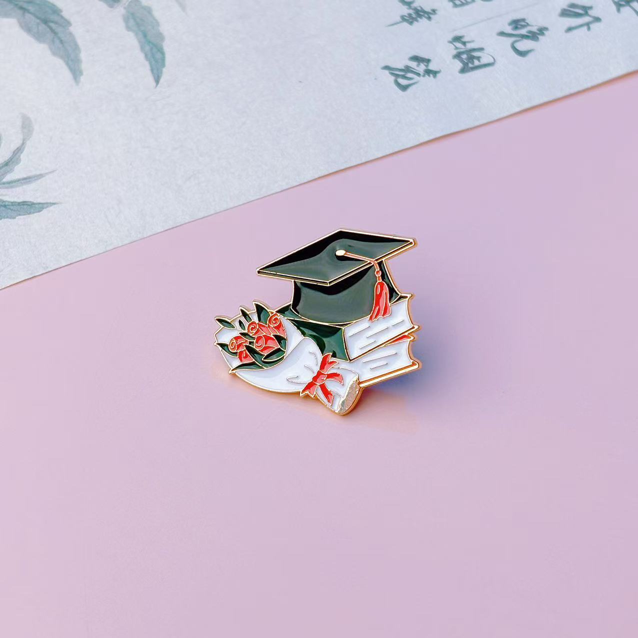 졸업 시즌 새로운 합금 창조적 인 시리즈 브로치 보석 꽃다발 증명서 학사 모자 모양 페인트 배지 브로치