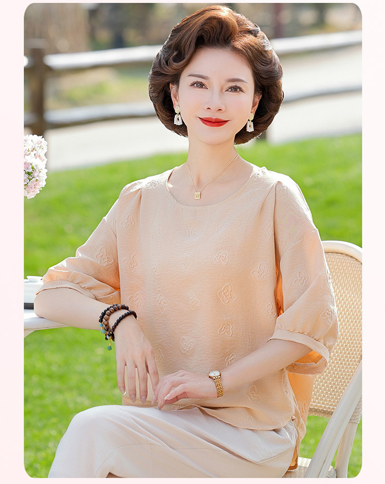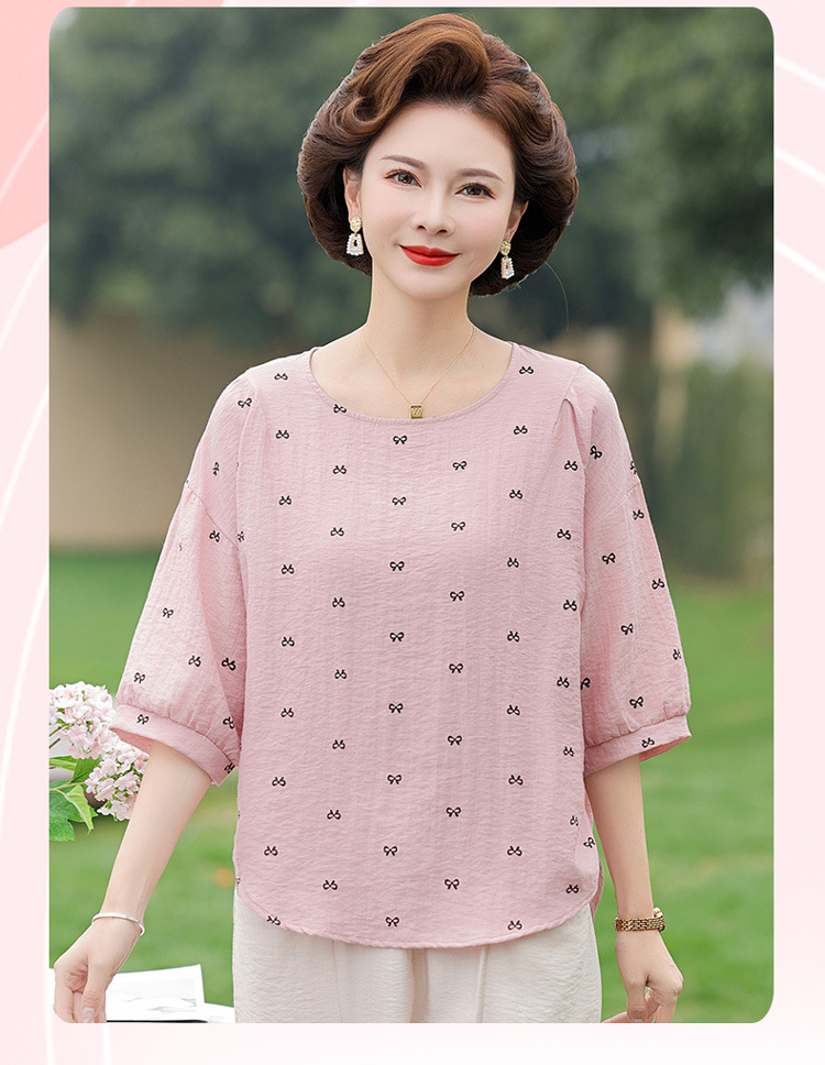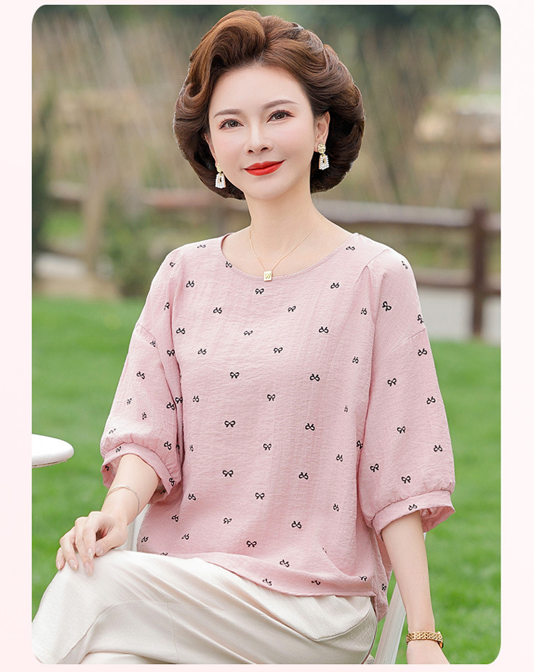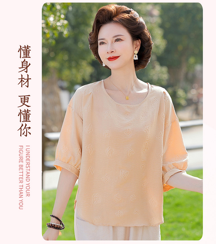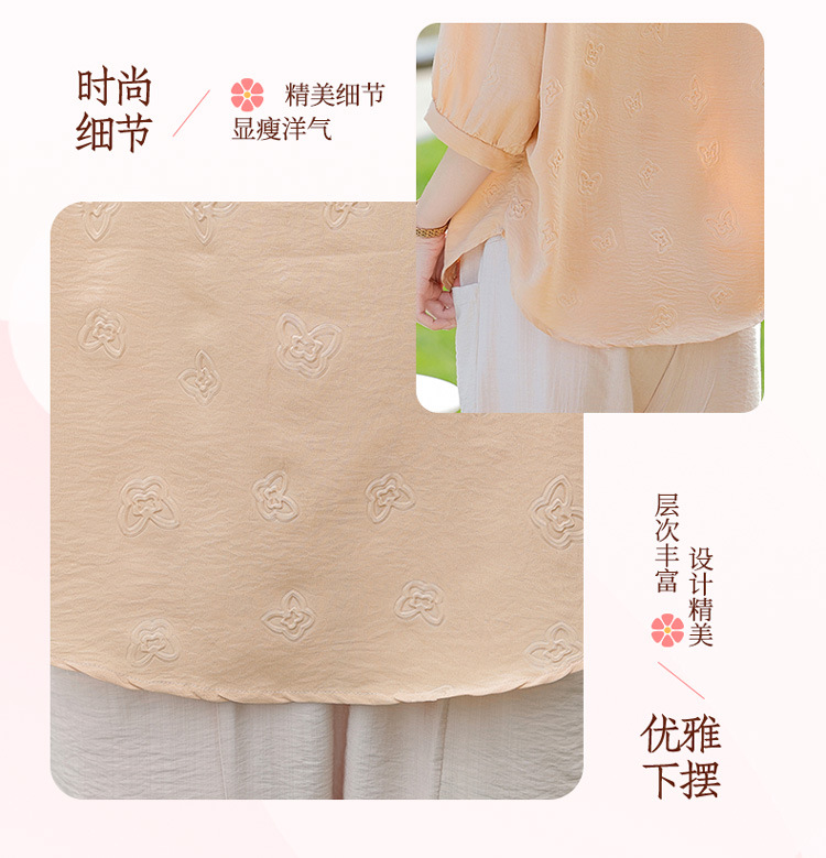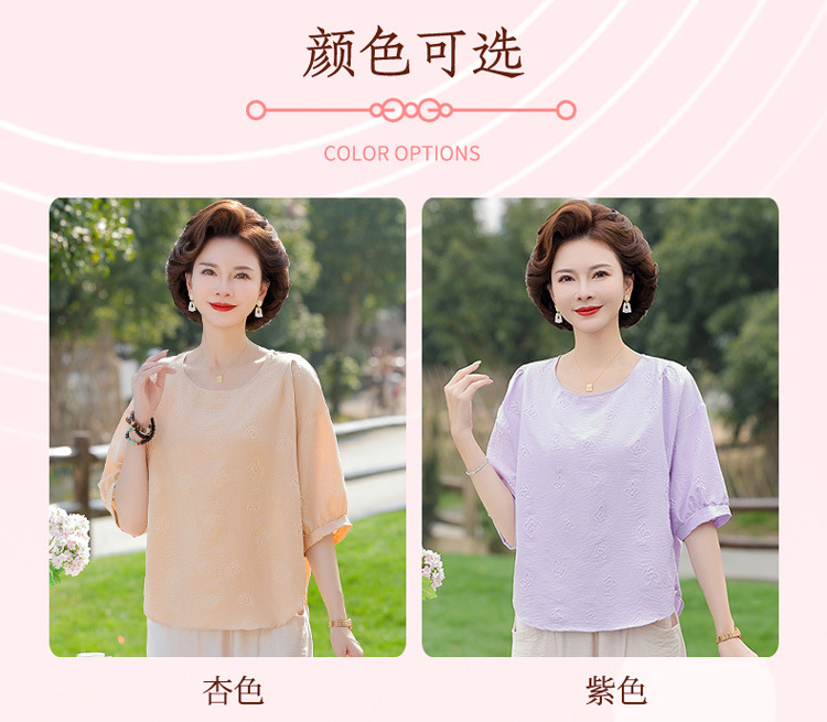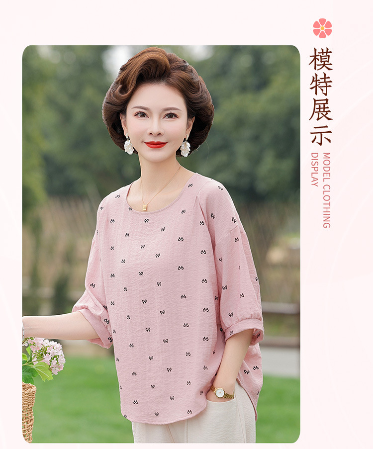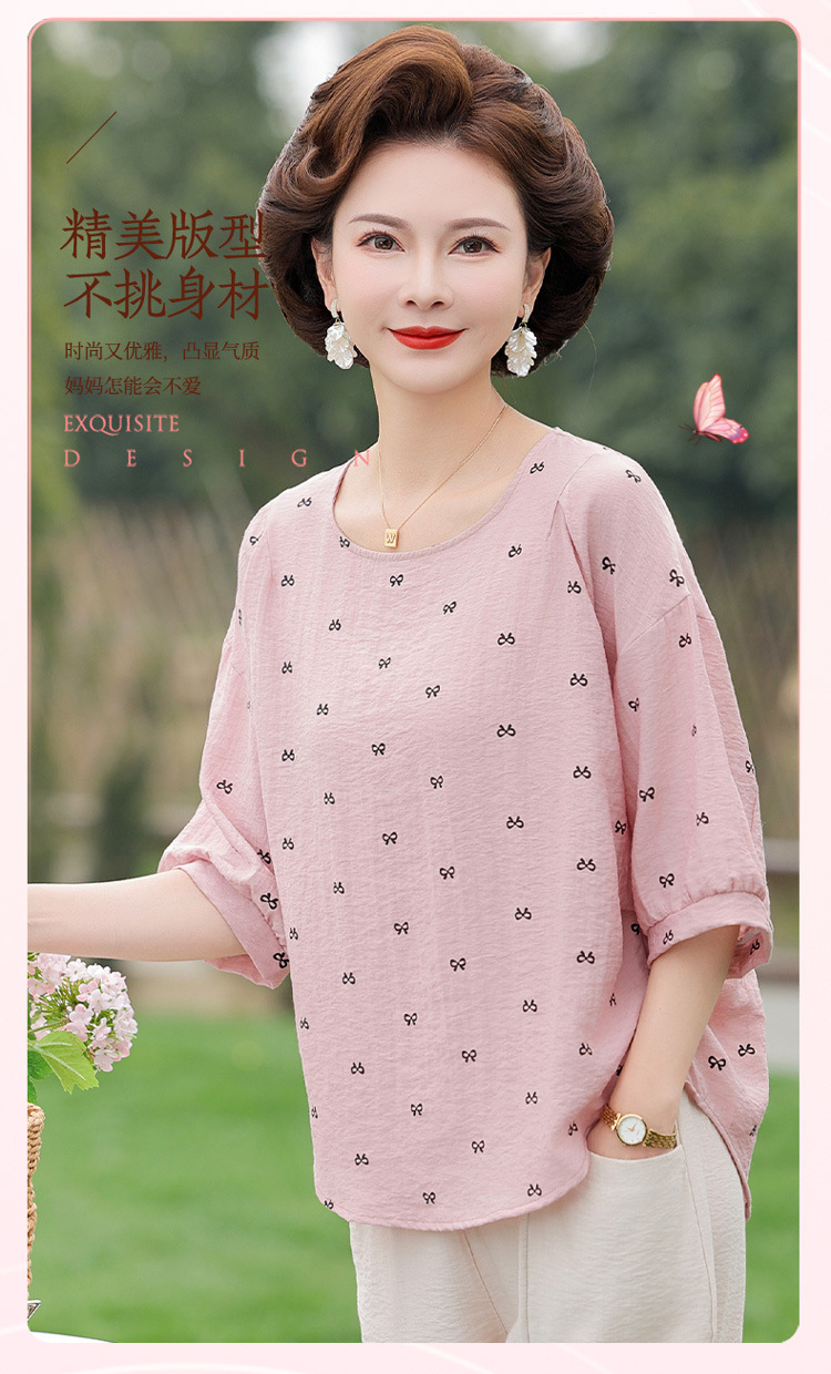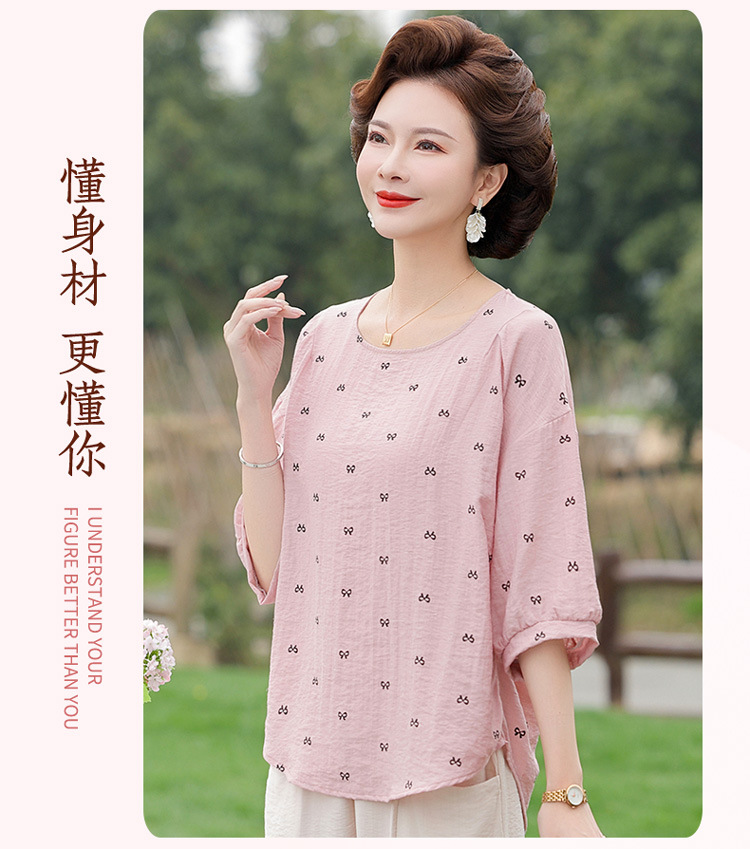 어머니의 여름 2025 새로운 면화와 리넨 세트 느슨한 플러스 사이즈 중년 및 노인 여성의 작은 캐주얼 바지 투피스 세트