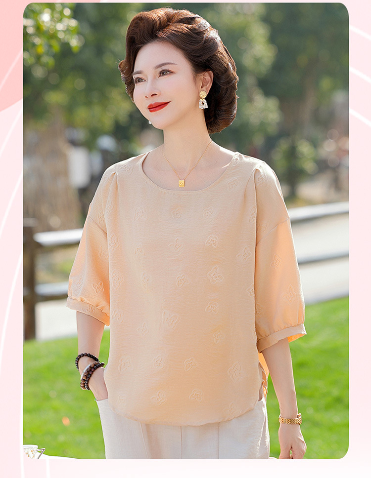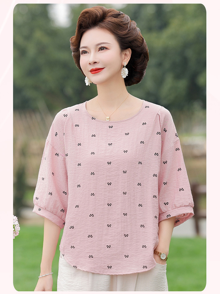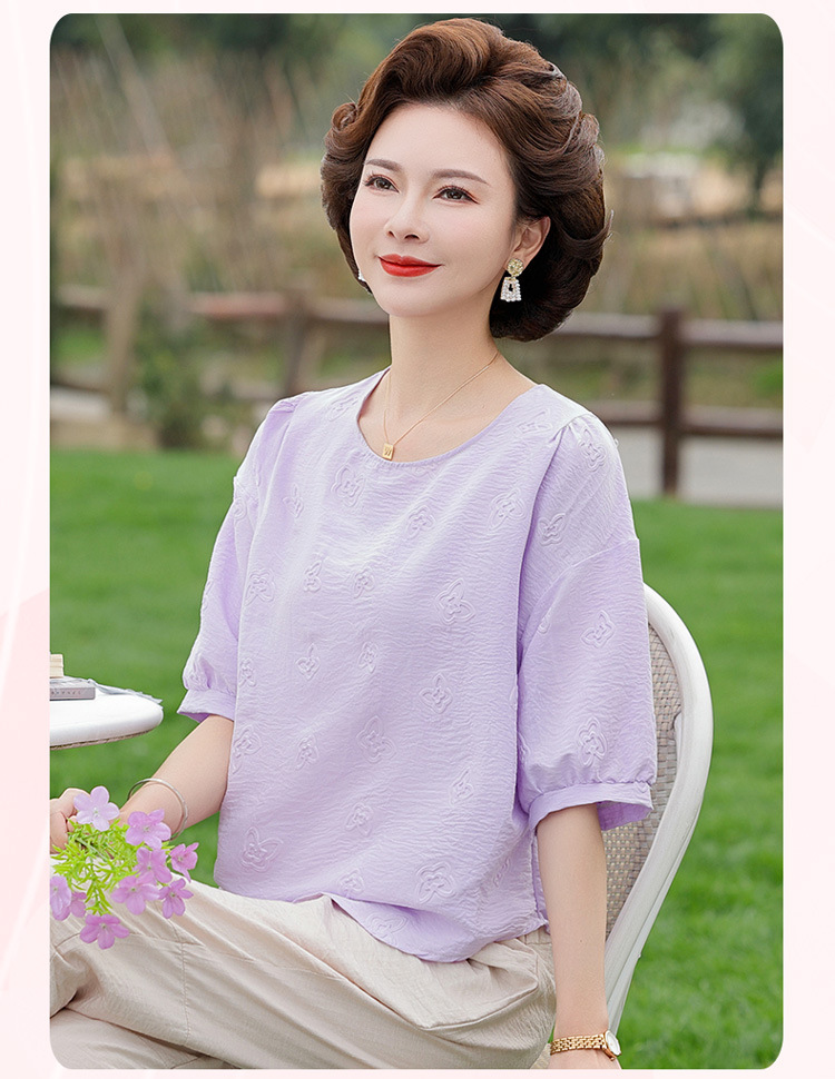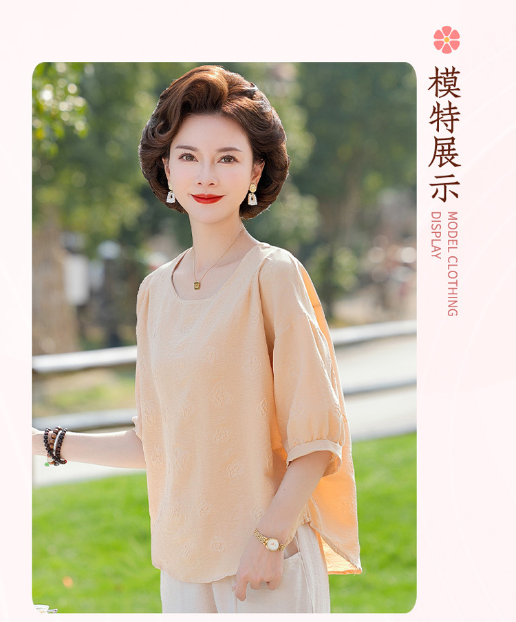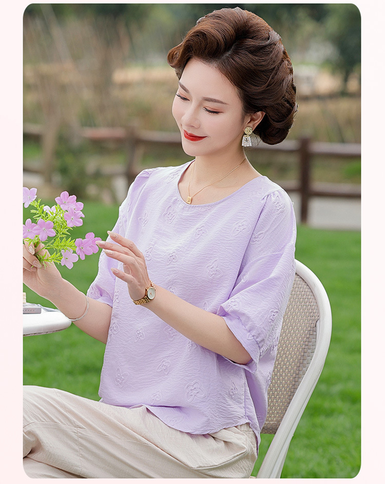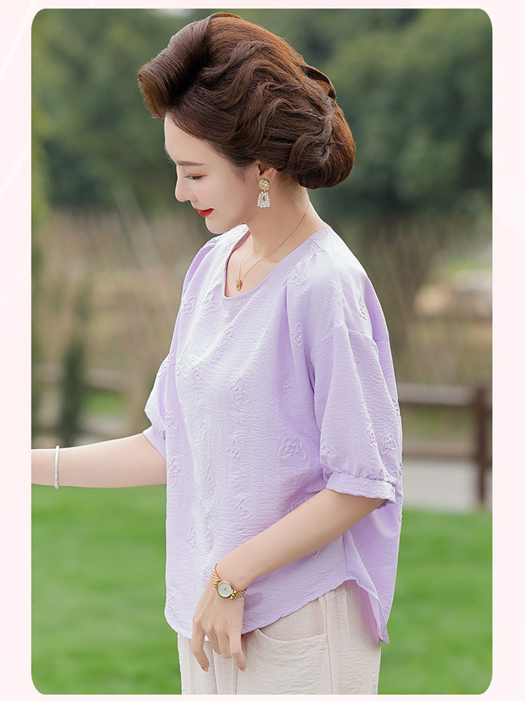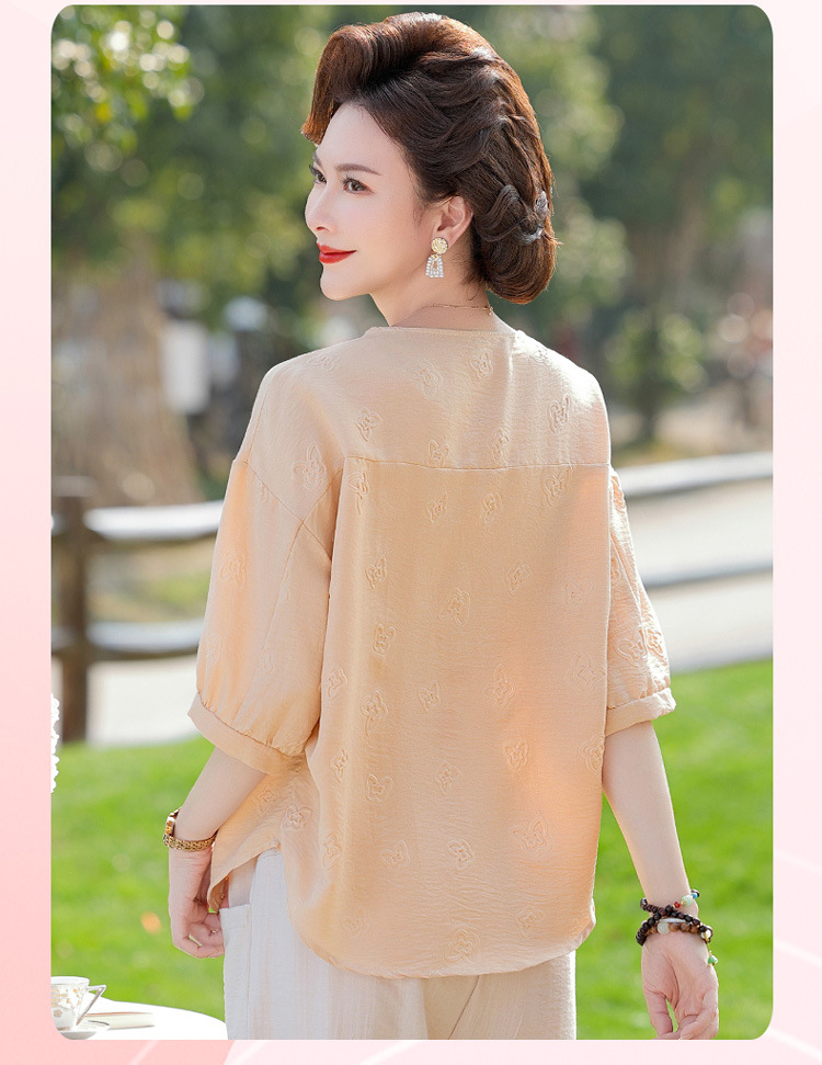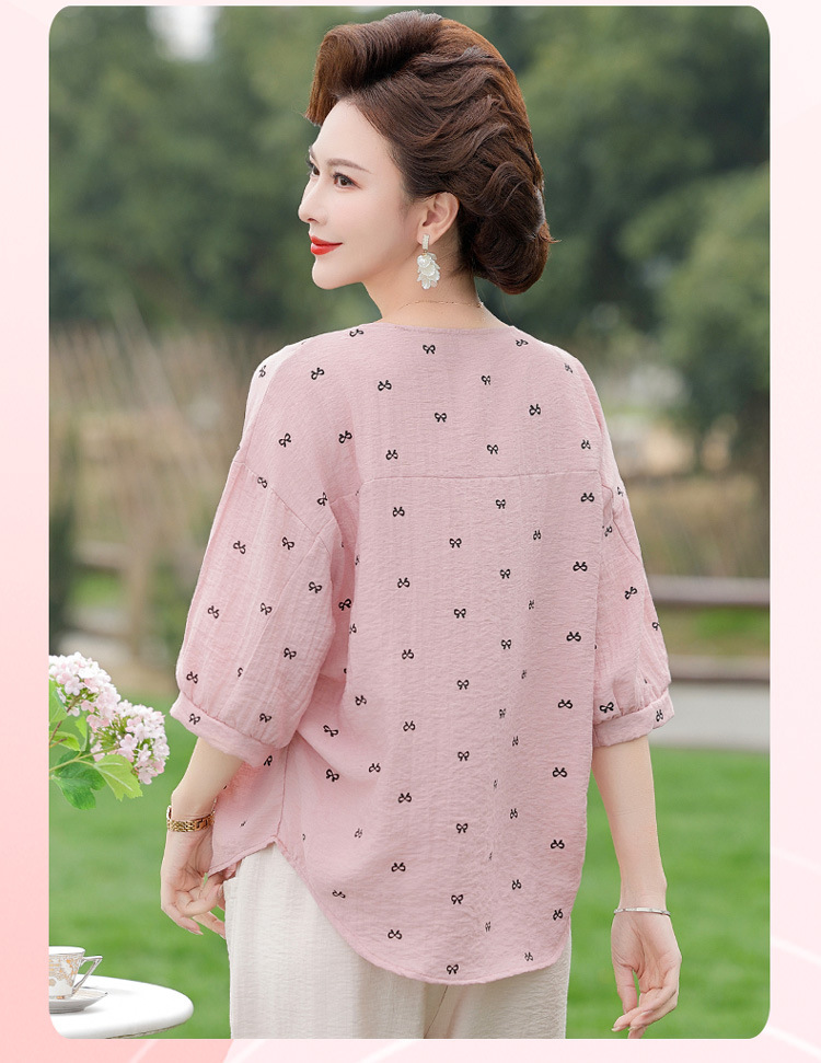 어머니의 여름 2025 새로운 면화와 리넨 세트 느슨한 플러스 사이즈 중년 및 노인 여성의 작은 캐주얼 바지 투피스 세트