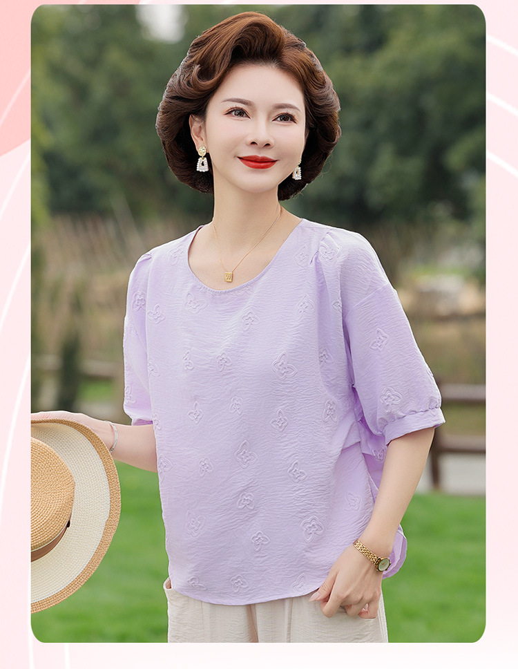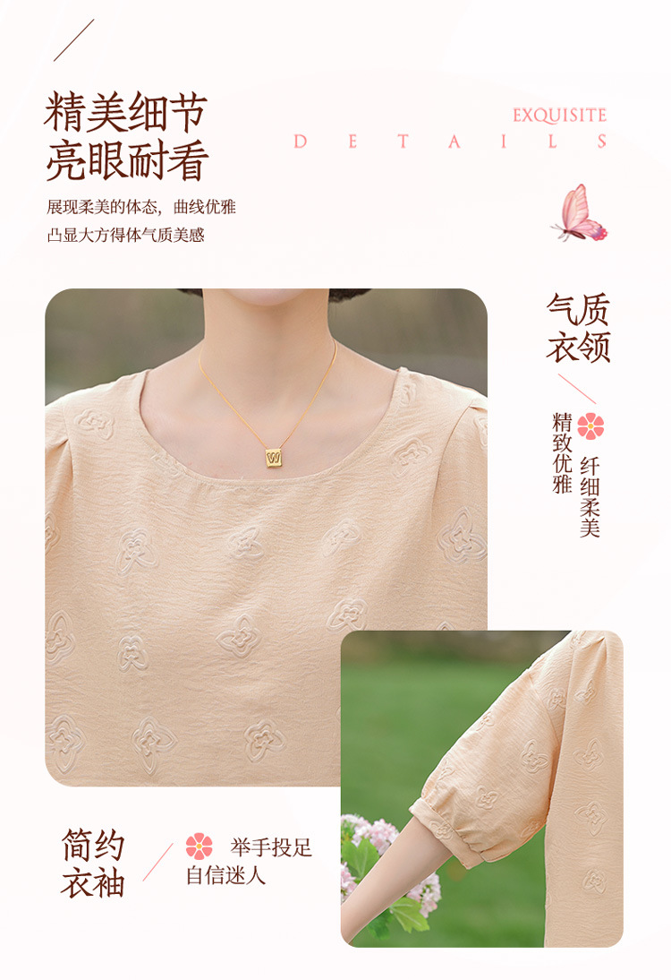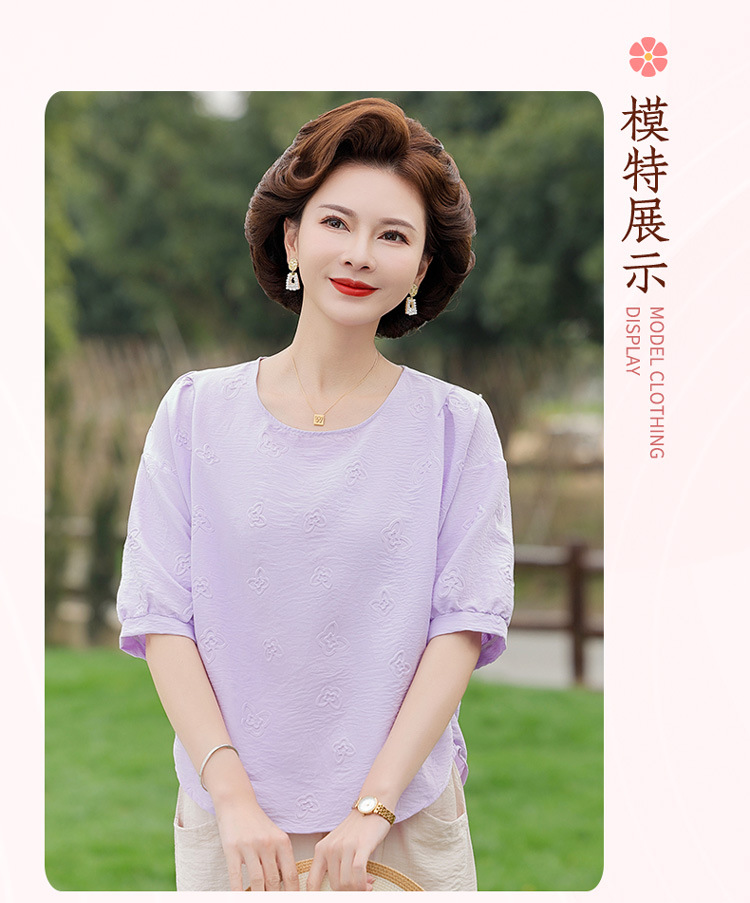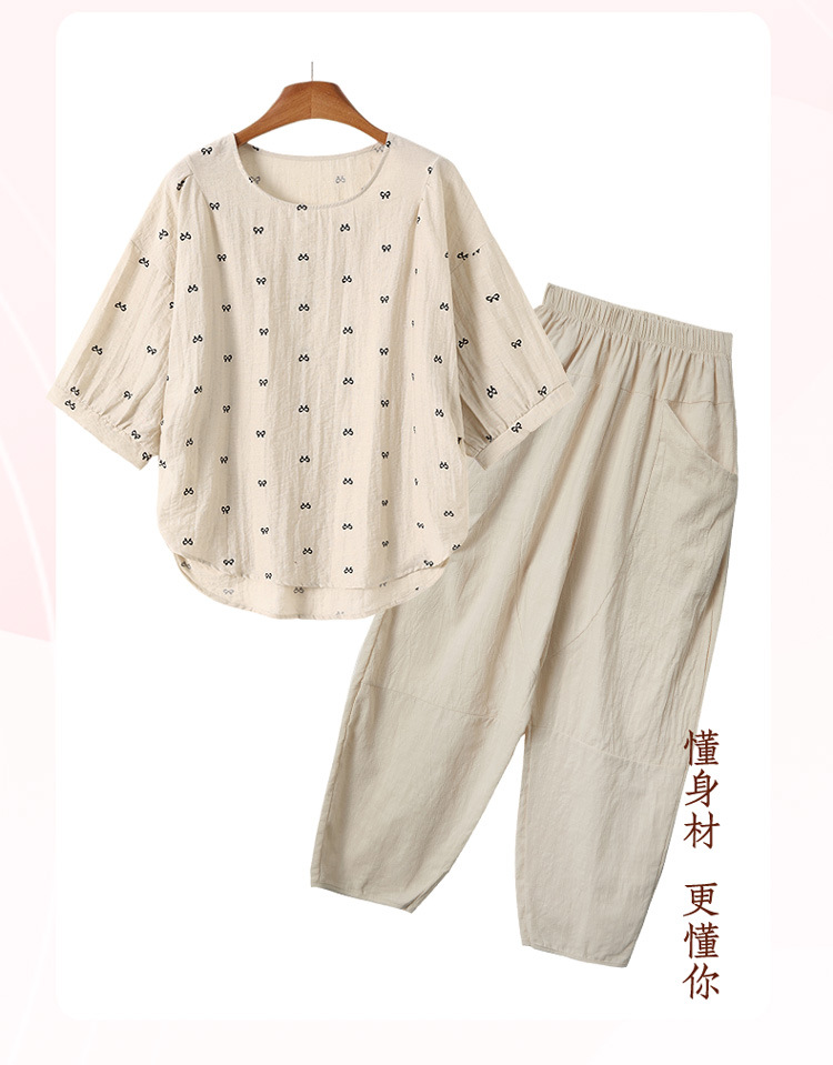 어머니의 여름 2025 새로운 면화와 리넨 세트 느슨한 플러스 사이즈 중년 및 노인 여성의 작은 캐주얼 바지 투피스 세트스토어 가기