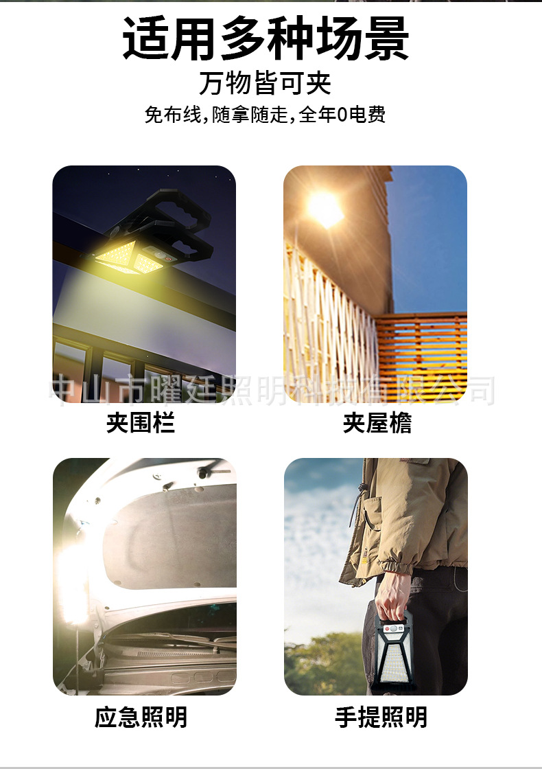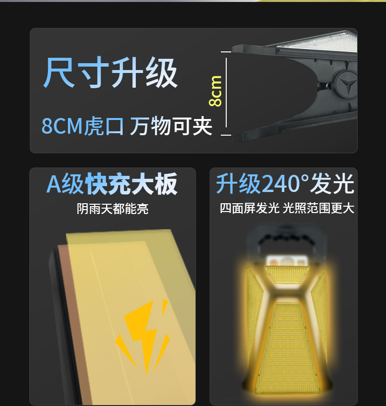 국경 간 태양 야외 LED 안뜰 인체 유도 조명 제어 방수 조명 벽 램프 캠핑 휴대용 클립 램프스토어 가기