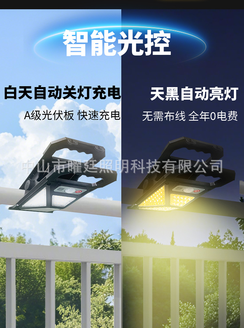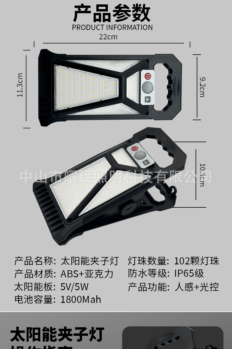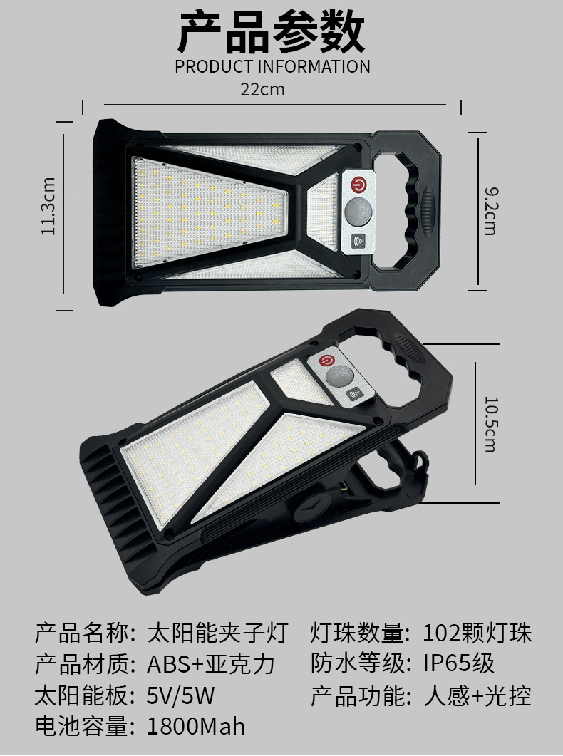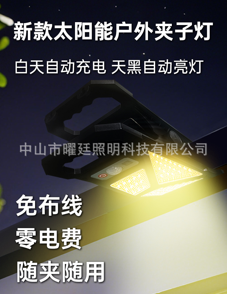 국경 간 태양 야외 LED 안뜰 인체 유도 조명 제어 방수 조명 벽 램프 캠핑 휴대용 클립 램프