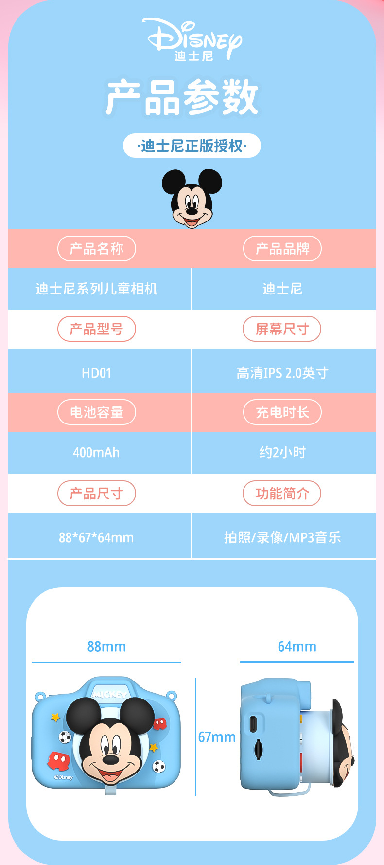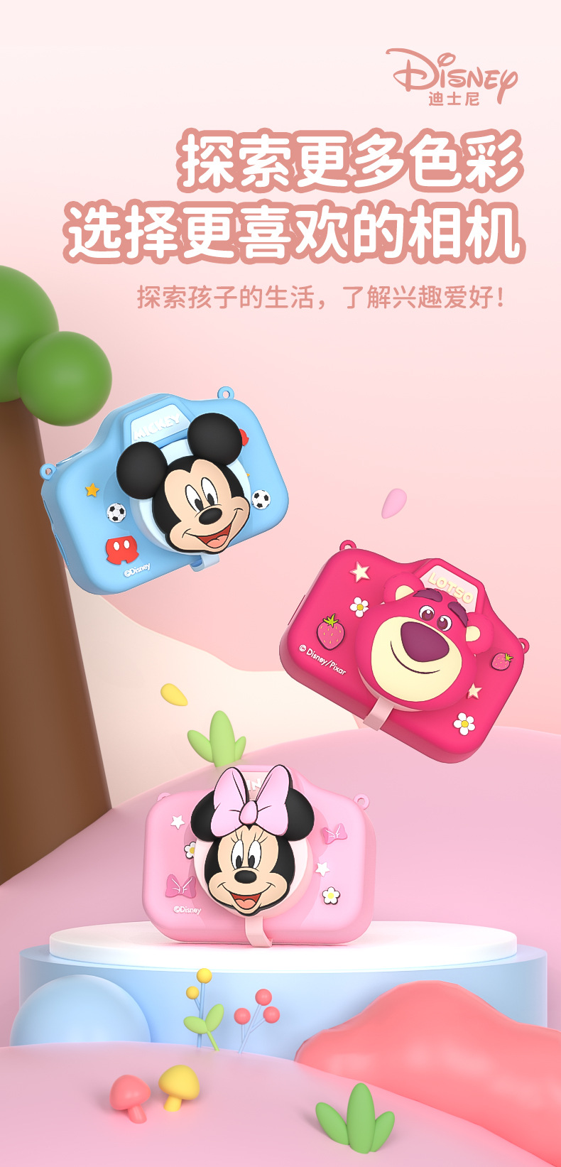 디즈니 어린이 미니 디지털 카메라 ccd 재미있는 장난감 선물 HD 픽셀 카메라 블루투스 촬영스토어 가기