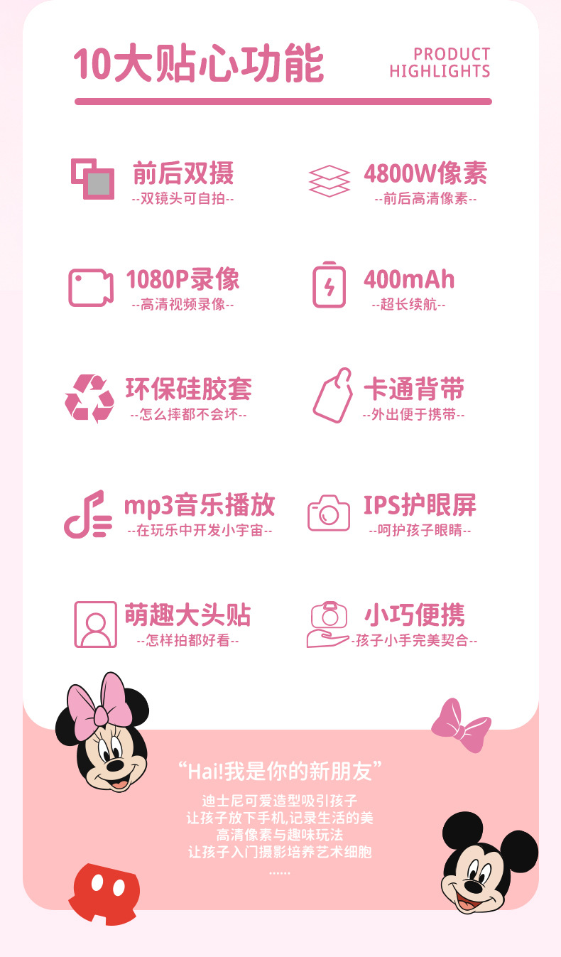 디즈니 어린이 미니 디지털 카메라 ccd 재미있는 장난감 선물 HD 픽셀 카메라 블루투스 촬영