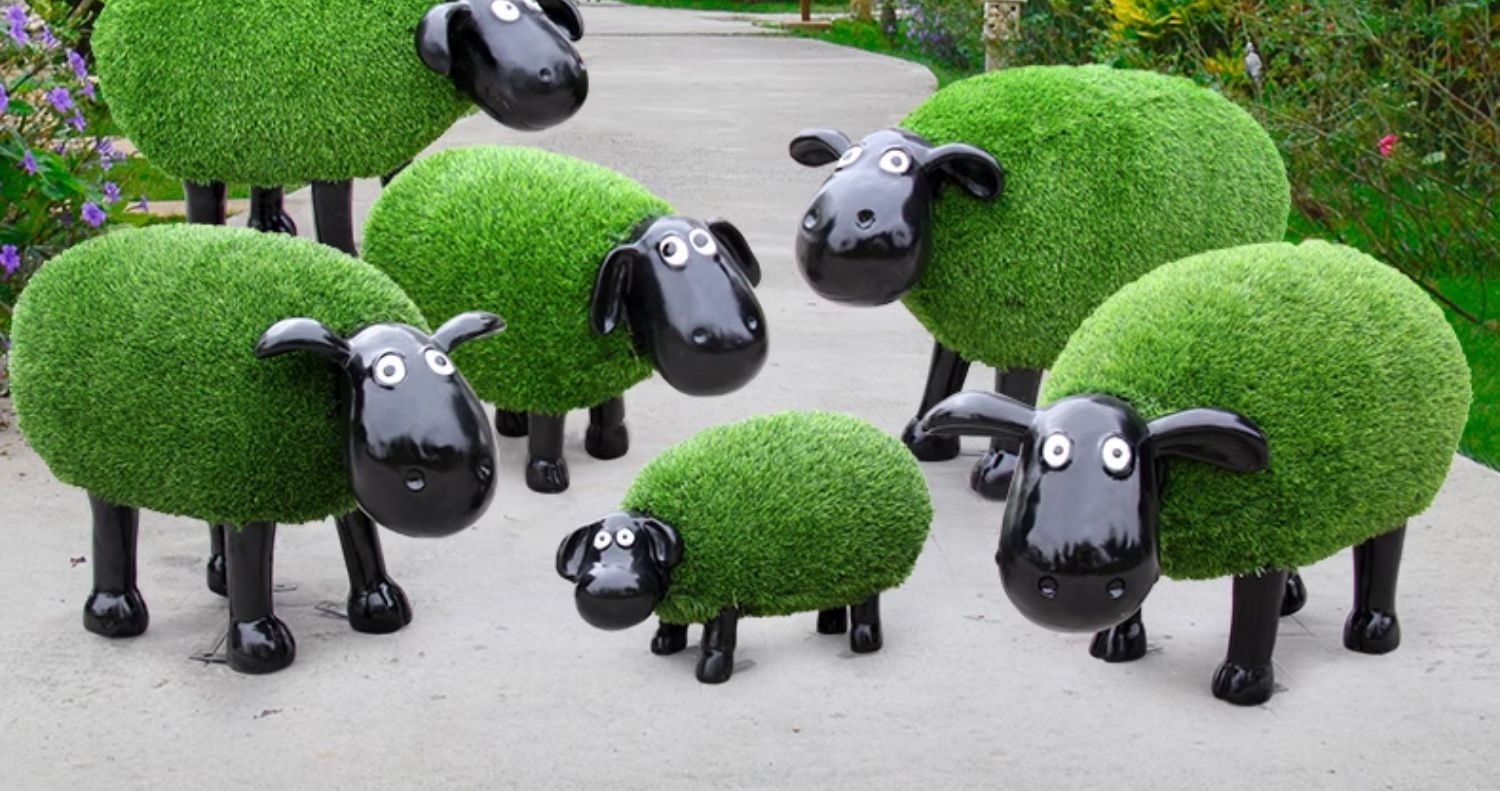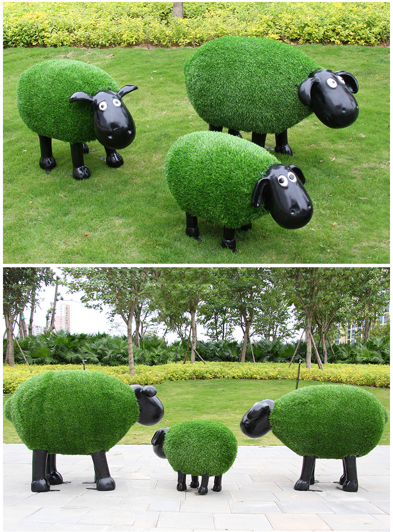 유리 섬유 강화 플라스틱 만화 잔디 양 조각 장식품 야외 유치원 커뮤니티 정원 법정 풍경 장식스토어 가기
