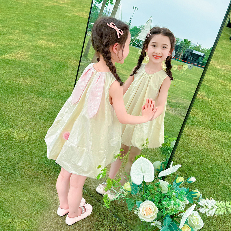 소녀 여름 원피스 2025 새로운 아기 소녀 꽃 버드 공주 원피스 여름 어린이 토끼 귀 베스타 원피스 여름스토어 가기