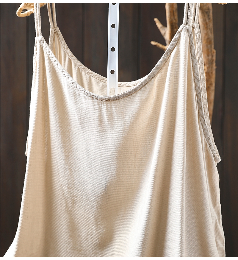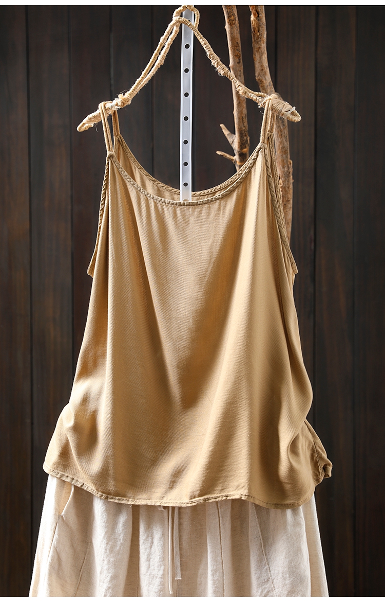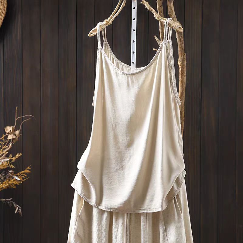 2025 봄 뉴 리넨 화이트 조끼 슬링 여자 작은 루즈 올 매치 캐주얼 민소매 기지 T스토어 가기