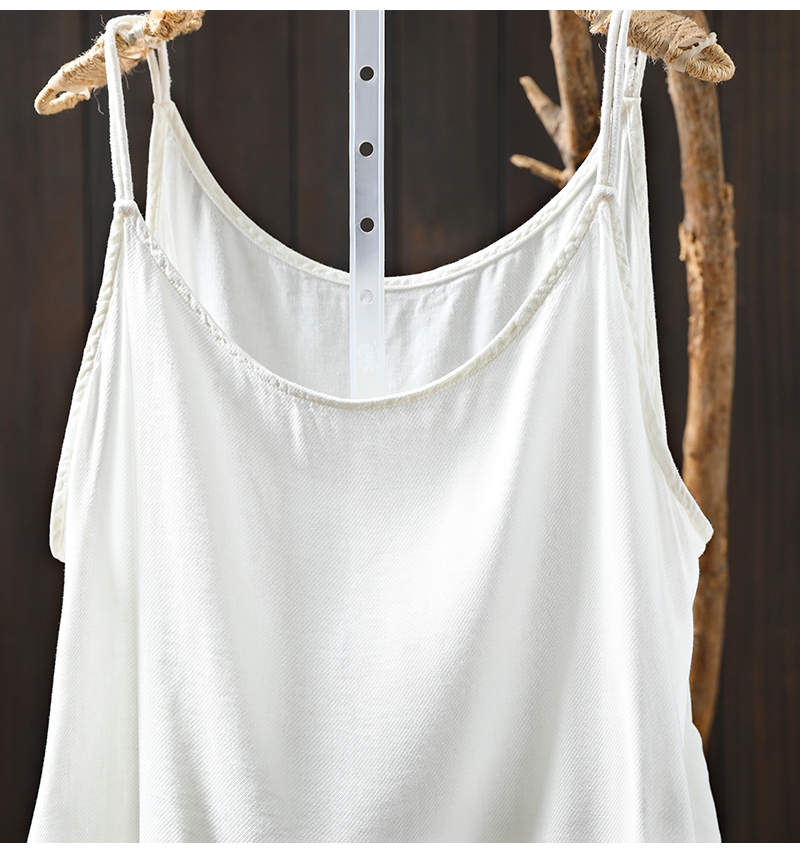 2025 봄 뉴 리넨 화이트 조끼 슬링 여자 작은 루즈 올 매치 캐주얼 민소매 기지 T