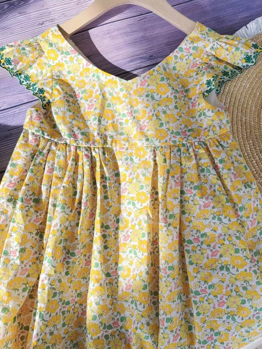 【재고 있음】 봄 여름 여아 신상 노란색 꽃무늬 자수 레이스 플라잉 슬리브 원피스
