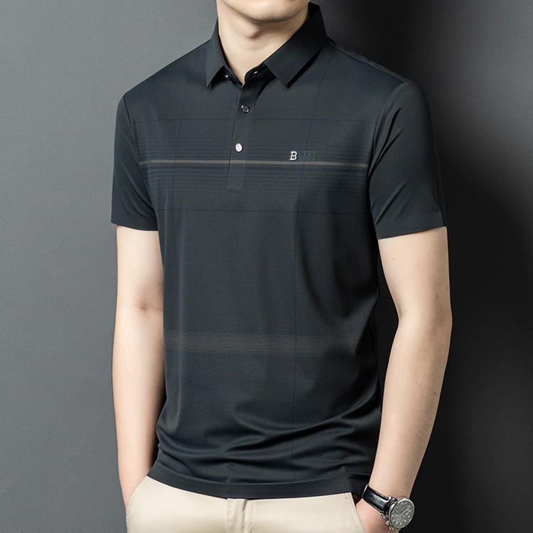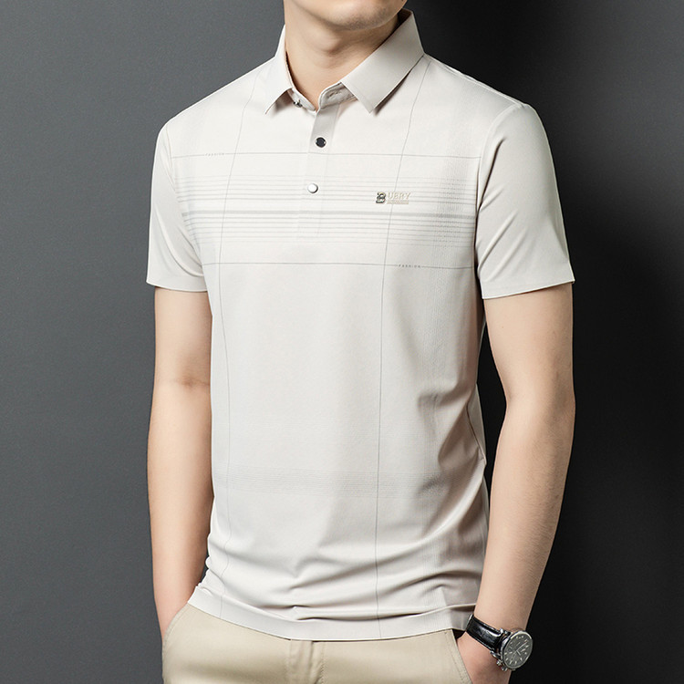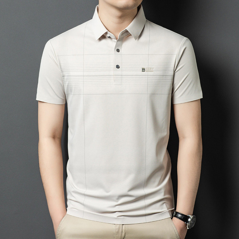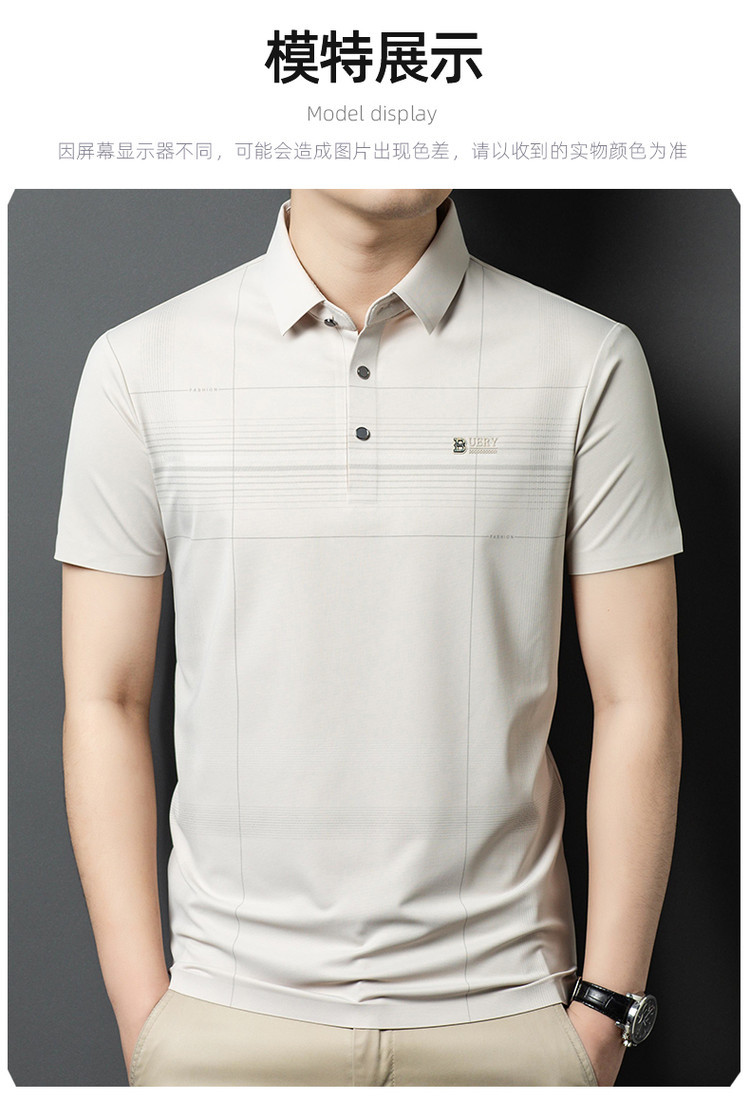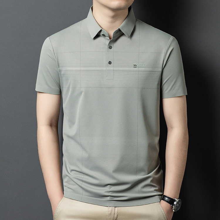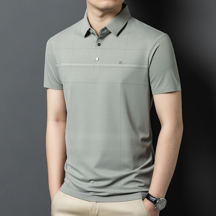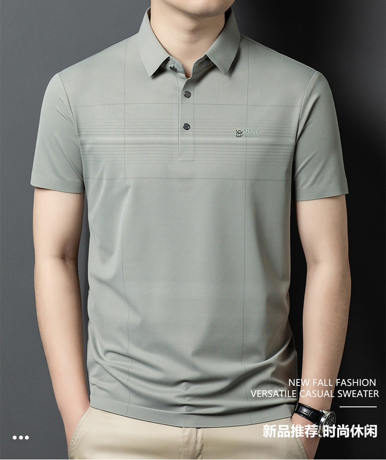아이스 실크 옷깃 폴로 셔츠 남성 패션 브랜드 2025 여름 새로운 캐주얼 단색 탑 led 반팔 티셔츠 남성스토어 가기