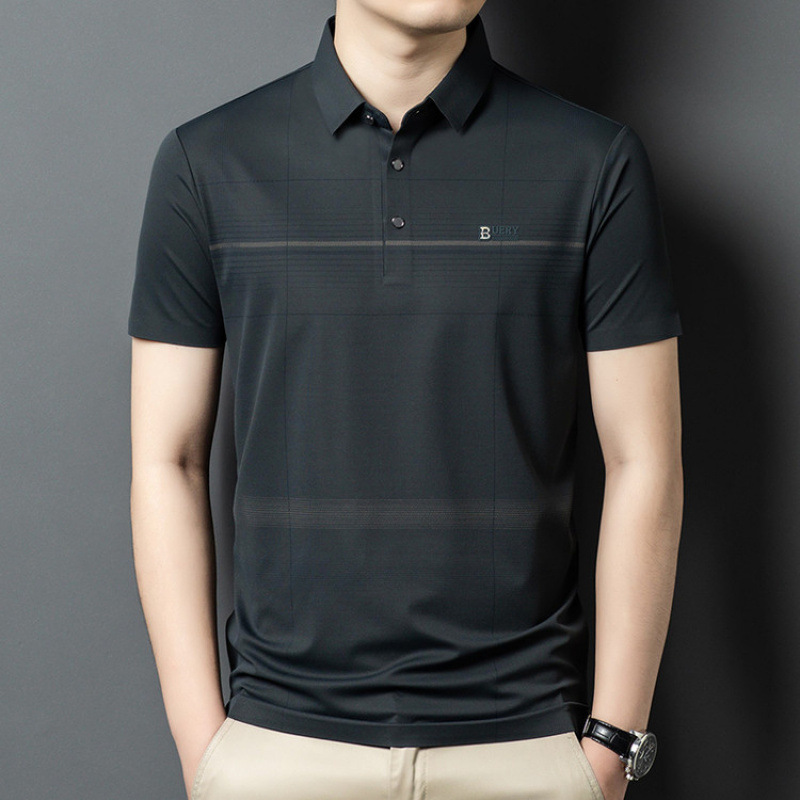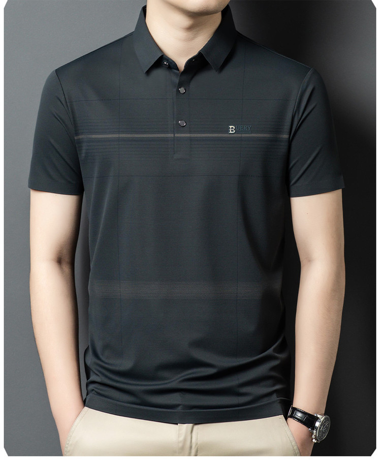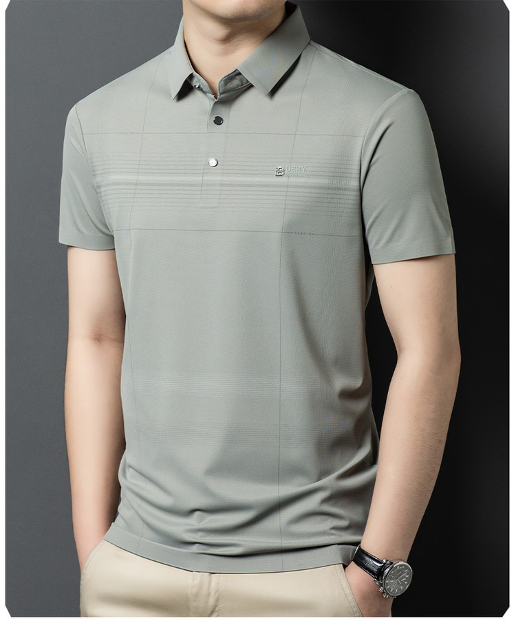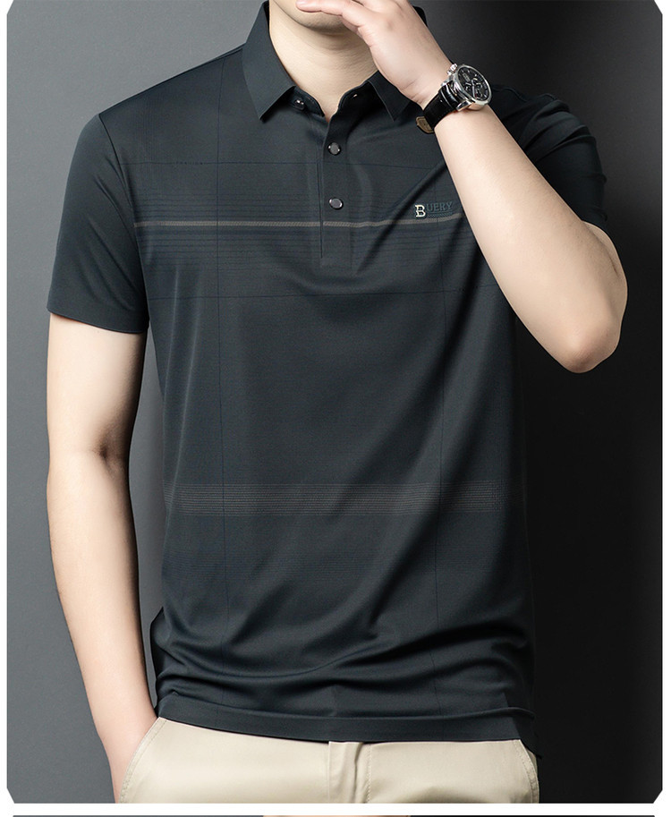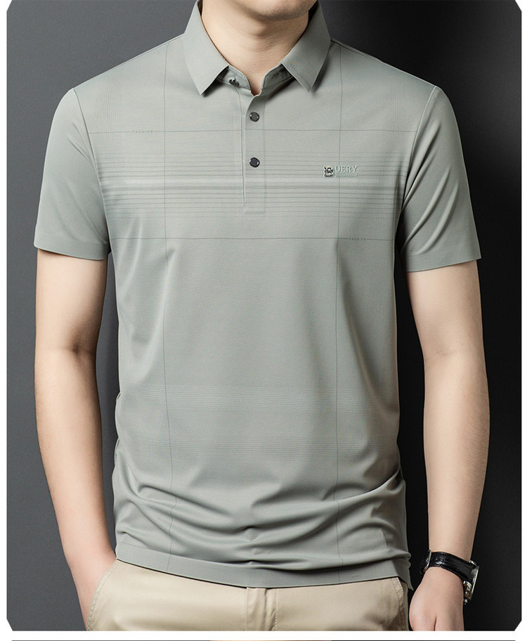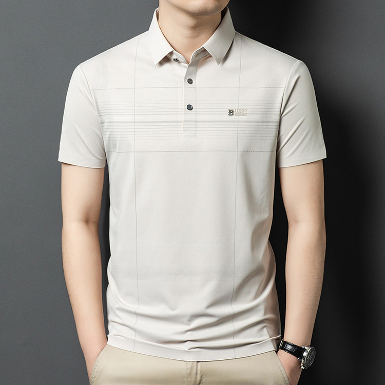 아이스 실크 옷깃 폴로 셔츠 남성 패션 브랜드 2025 여름 새로운 캐주얼 단색 탑 led 반팔 티셔츠 남성스토어 가기