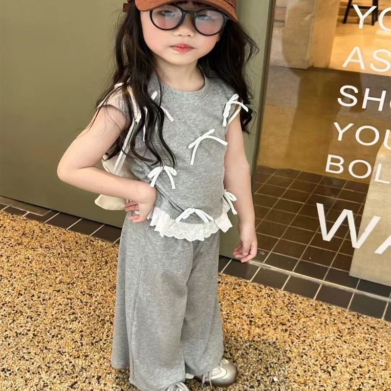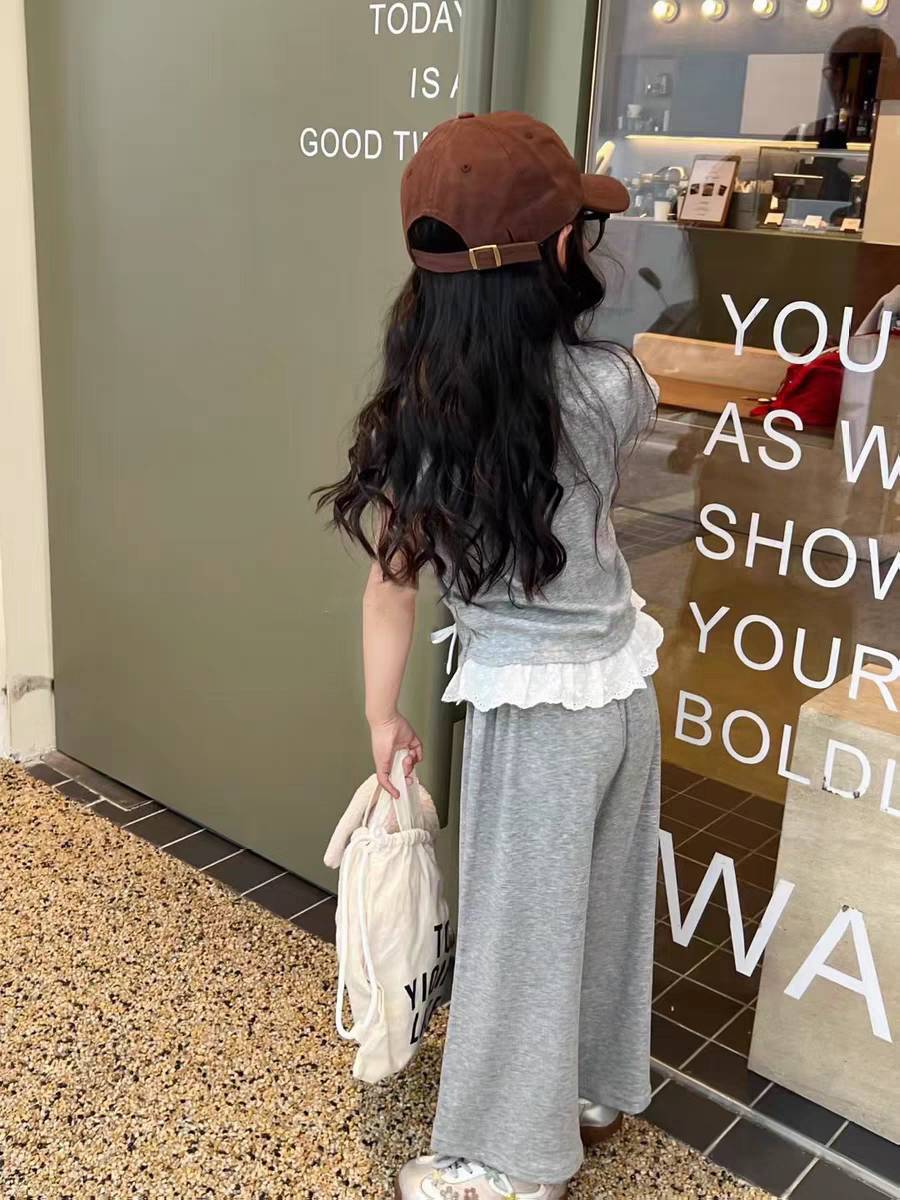 소녀 여름 새로운 패션 세련된 화이트 레이스 투피스 세트 스테레오 활 세트 달콤한 귀여운 레이스