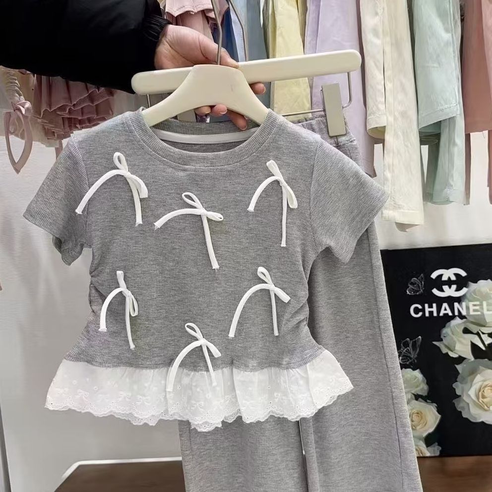 소녀 여름 새로운 패션 세련된 화이트 레이스 투피스 세트 스테레오 활 세트 달콤한 귀여운 레이스스토어 가기