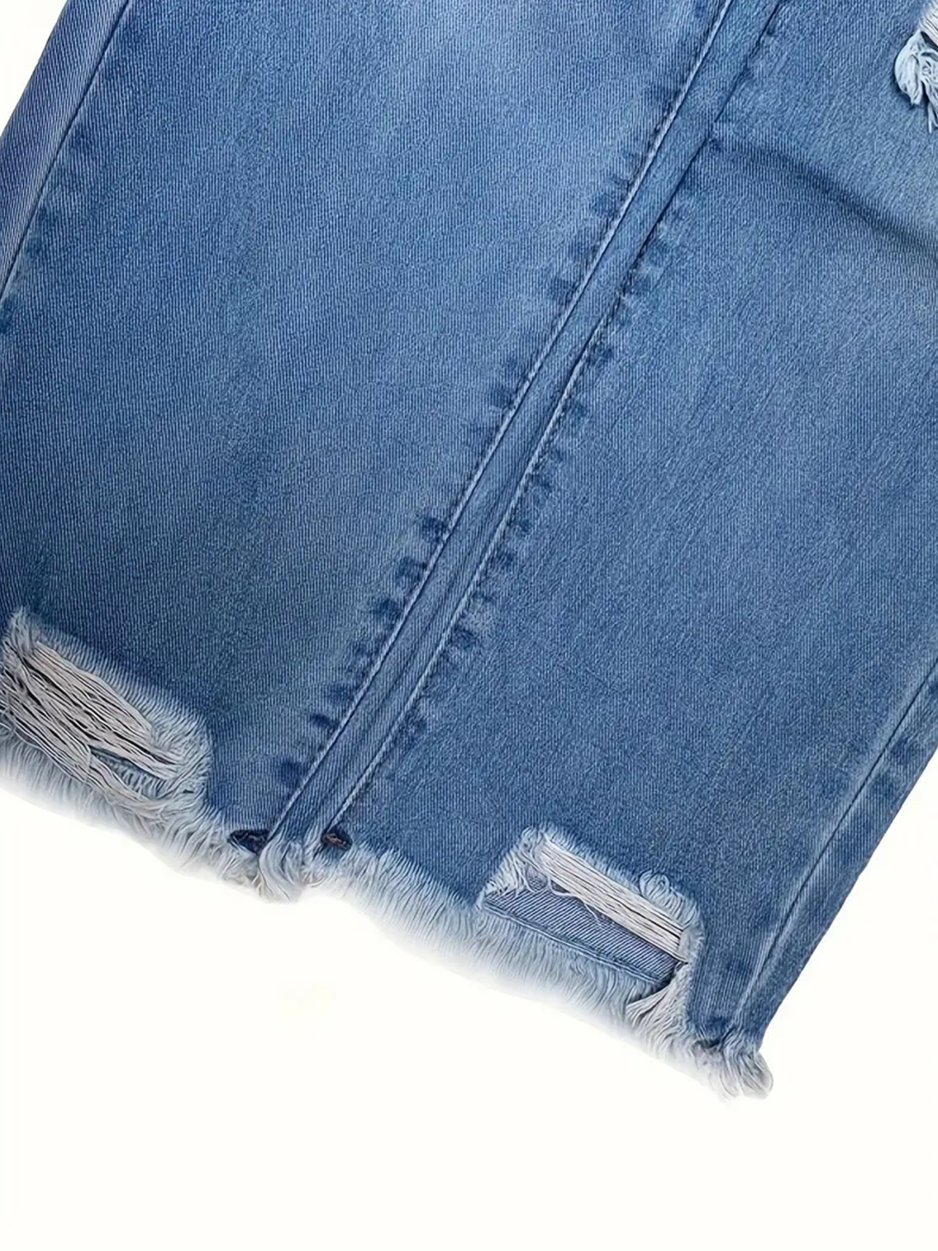 해외 창고 배송 가능 2025 신상 유럽 및 미국 해외 무역 찢어진 워싱 캐주얼 청바지 여성용 아마존